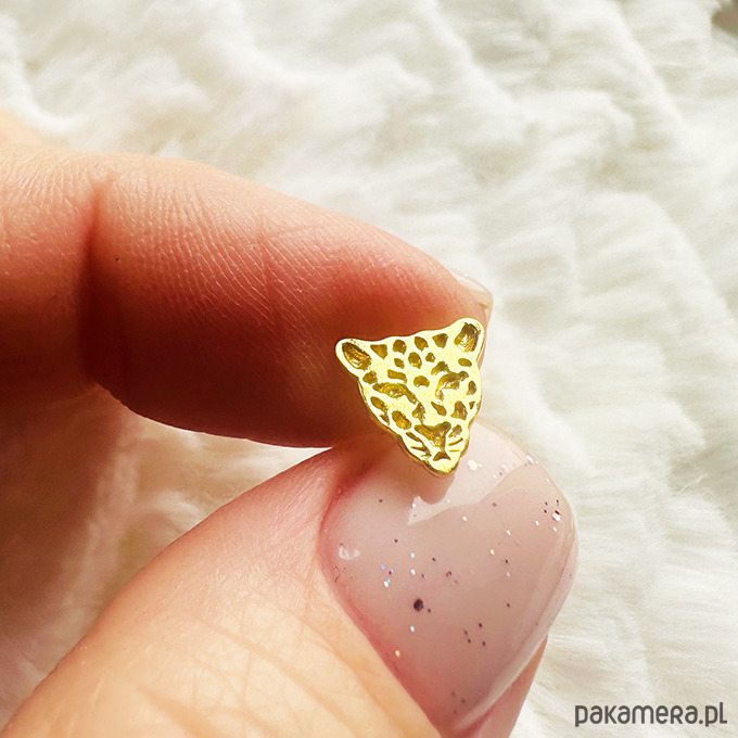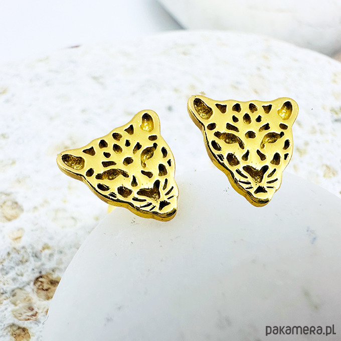 Kolczyki złote Lamparty, sztyfty głowa lamparta, puma