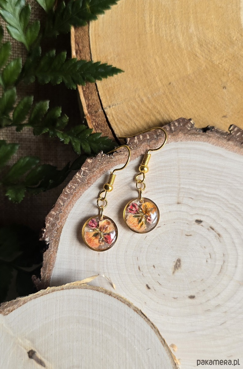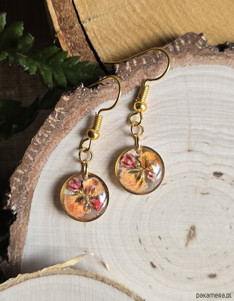 Oferuję Państwu unikalną biżuterię. Kolczyki są wykonane z suszonych kwiatów i żywicy epoksydowej. Biżuteria jest wspaniałym i oryginalnym prezentem na lata.