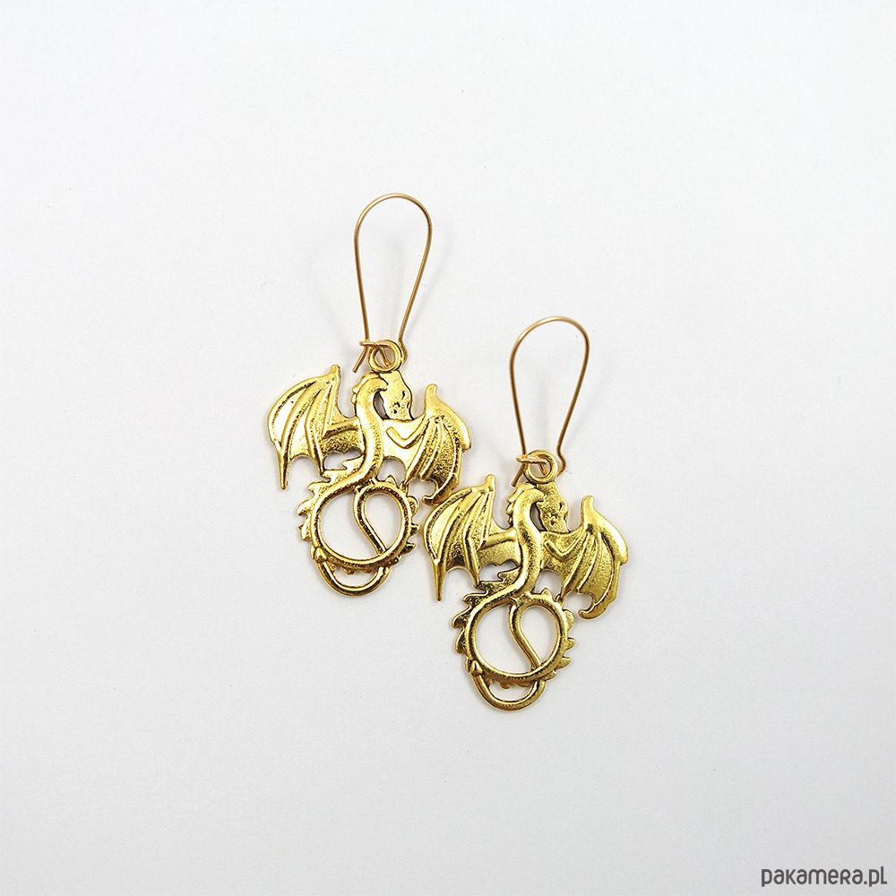 Kolczyki z pięknymi zawieszkami w kształcie smoków.