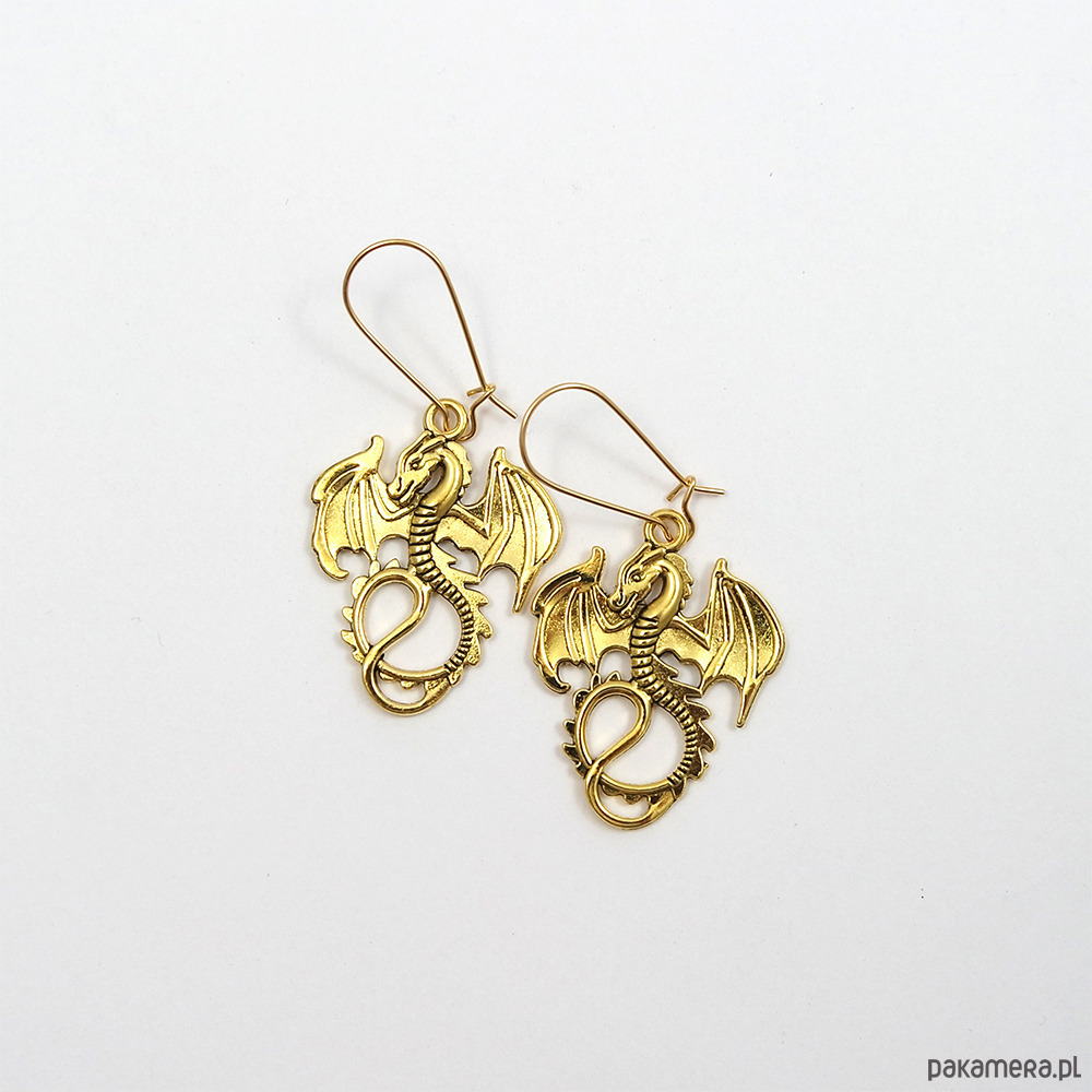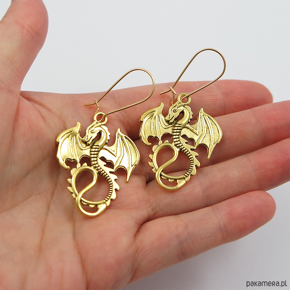 Kolczyki z pięknymi zawieszkami w kształcie smoków.