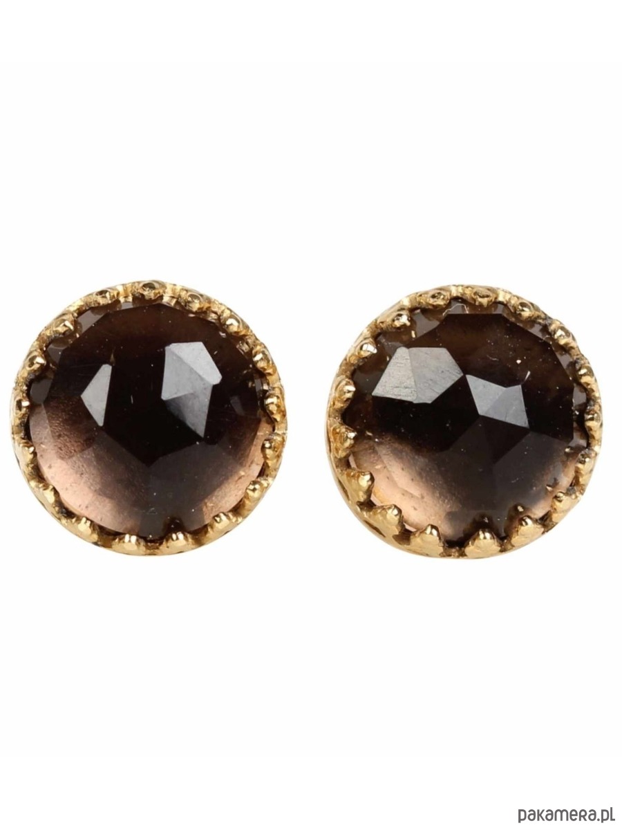 Kolczyki złote sztyfty Mignon z kwarcem dymnym
