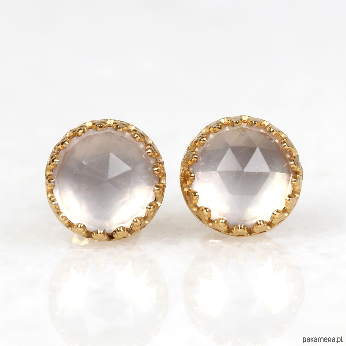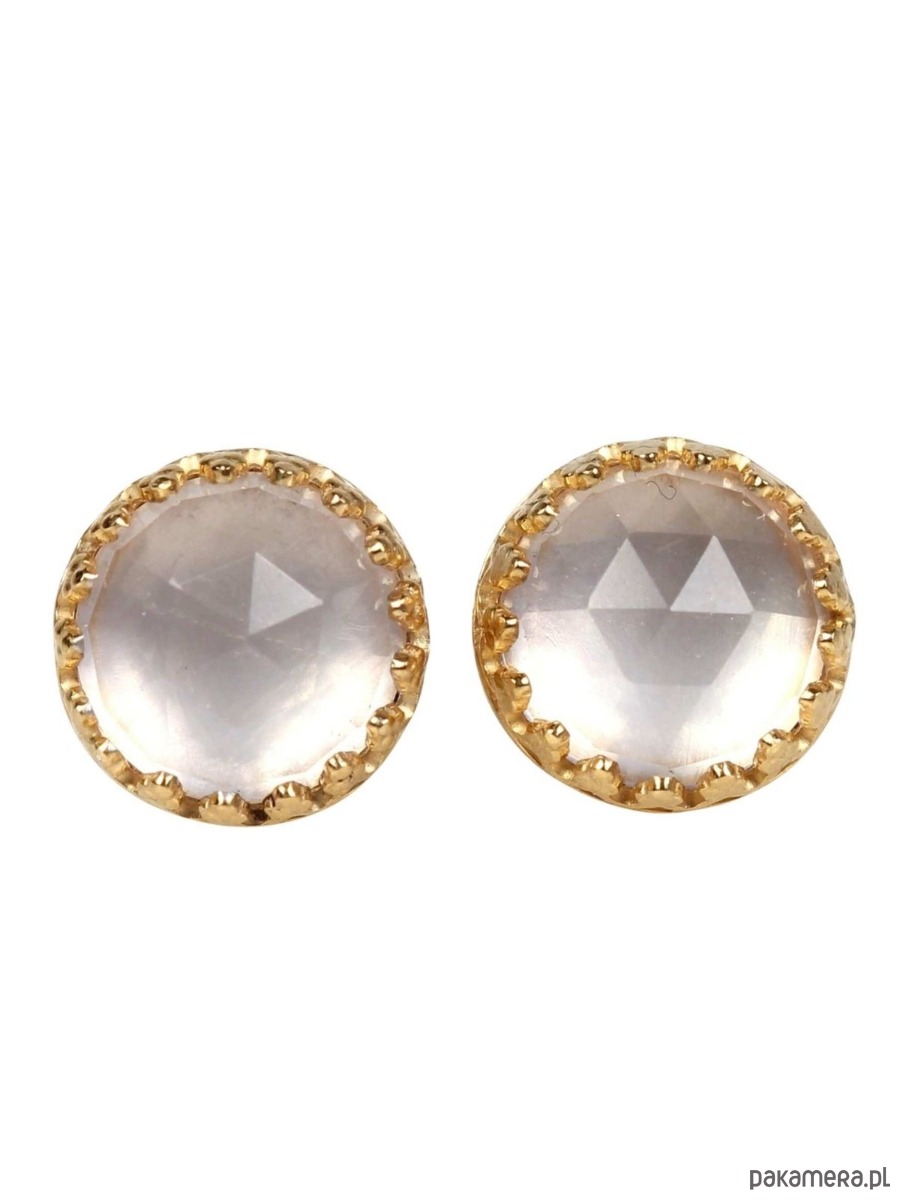 Kolczyki złote sztyfty Mignon z kwarcem różowym