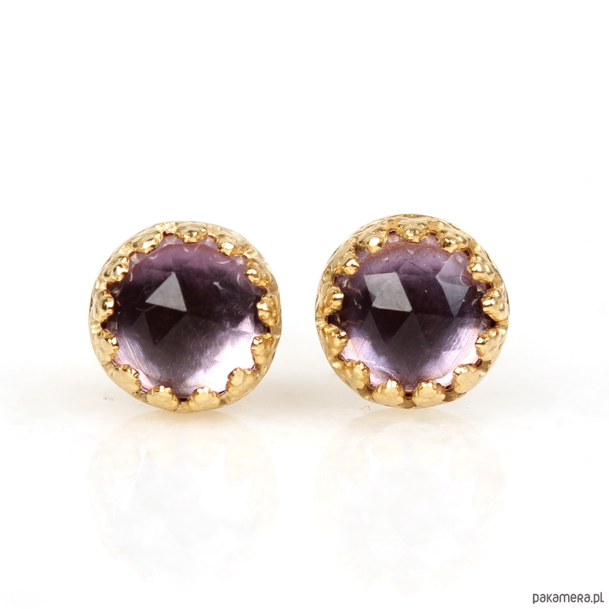 Ręcznie wykonane kolczyki ze srebra pokrytego 24 karatowym złotem z ametystem