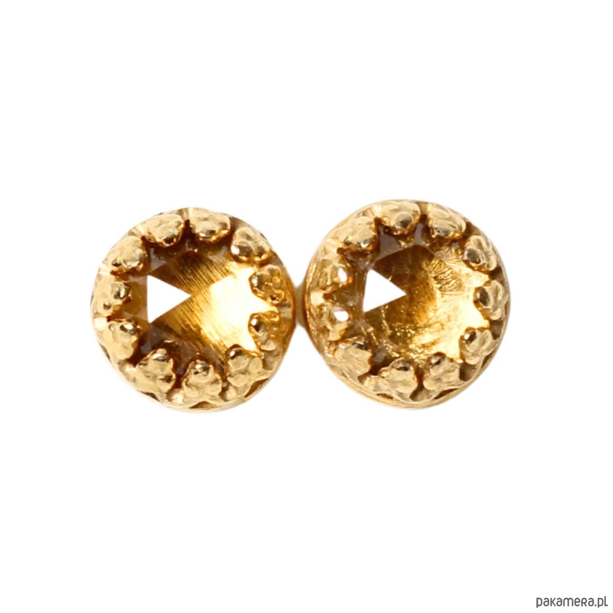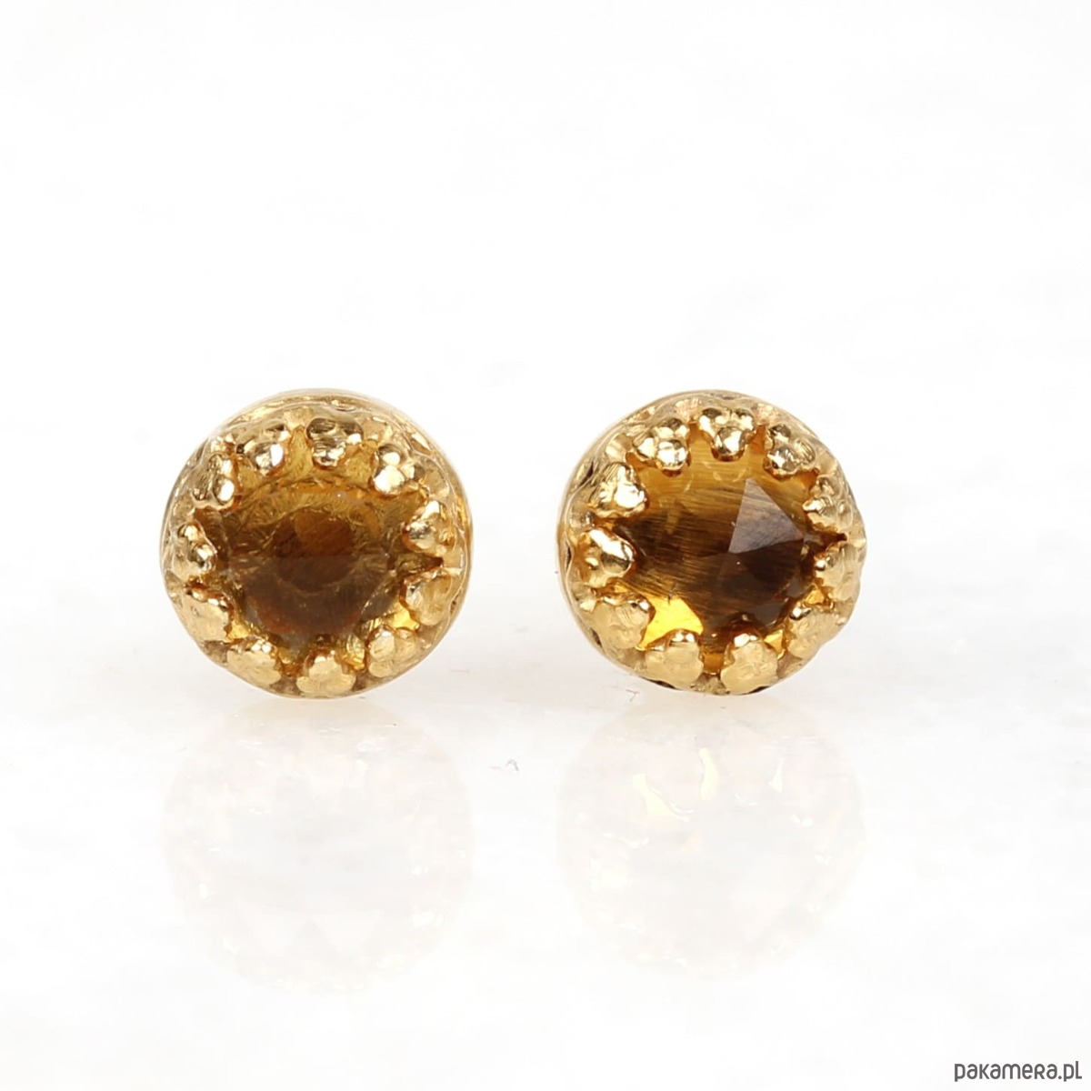 Ręcznie wykonane kolczyki ze srebra pokrytego 24 karatowym złotem z cytrynem. Z tyłu kolczyki wykończone pięknym kwiatowym wzorem - każda para w unikatowy sposób.