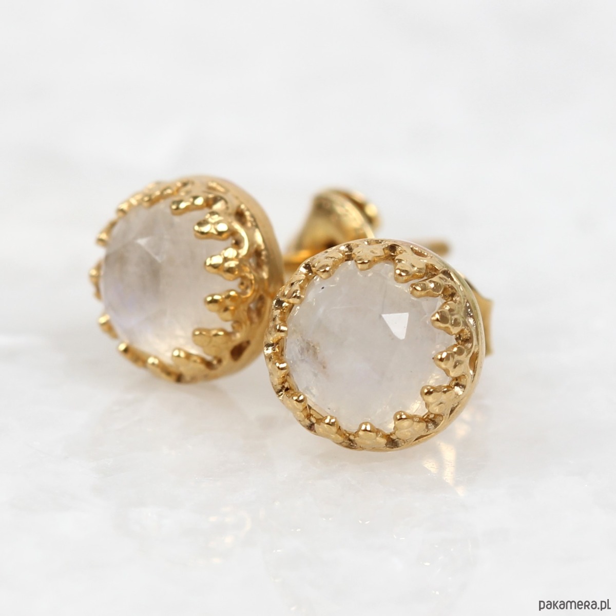 Kolczyki złote sztyfty Petite z kamieniem księżycowym