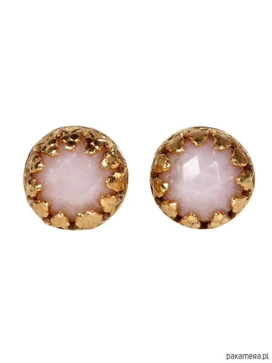 Ręcznie wykonane kolczyki ze srebra pokrytego 24 karatowym złotem z opalem różowym. Z tyłu kolczyki wykończone pięknym kwiatowym wzorem - każda para w unikatowy sposób.