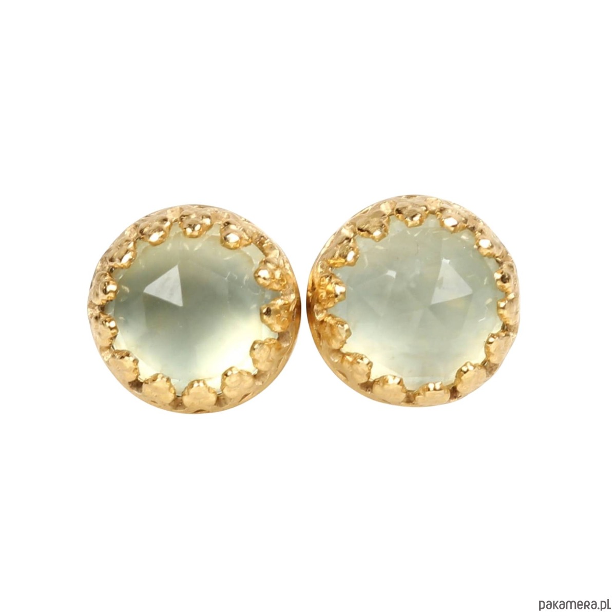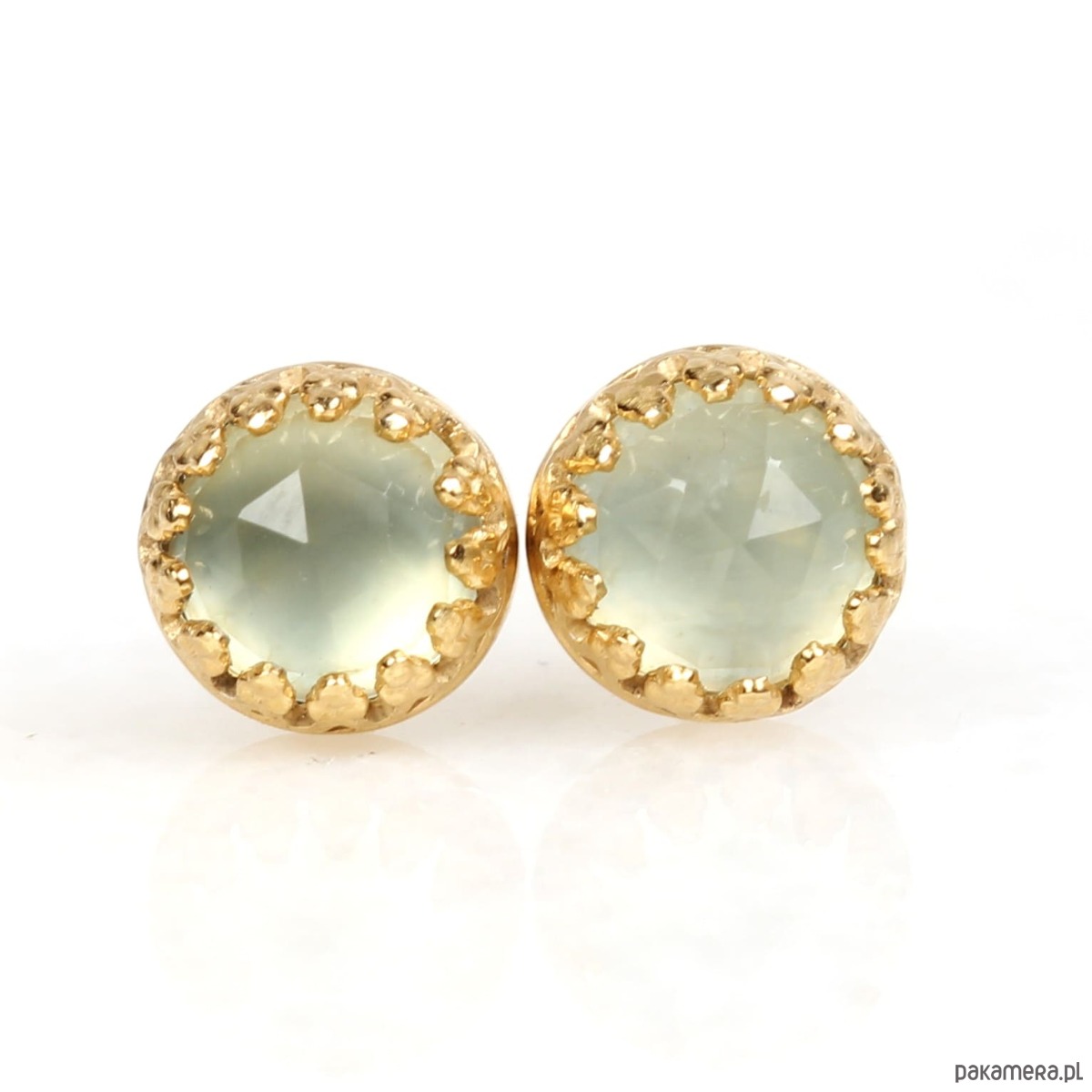 Ręcznie wykonane kolczyki ze srebra pokrytego 24 karatowym złotem z zielonym prehnitem