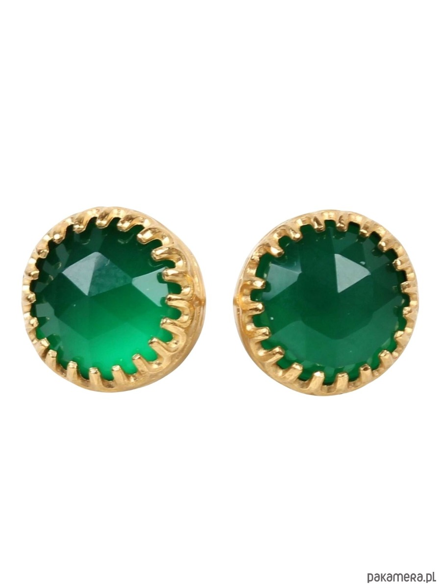 Kolczyki złote sztyfty Mignon z agatem zielonym