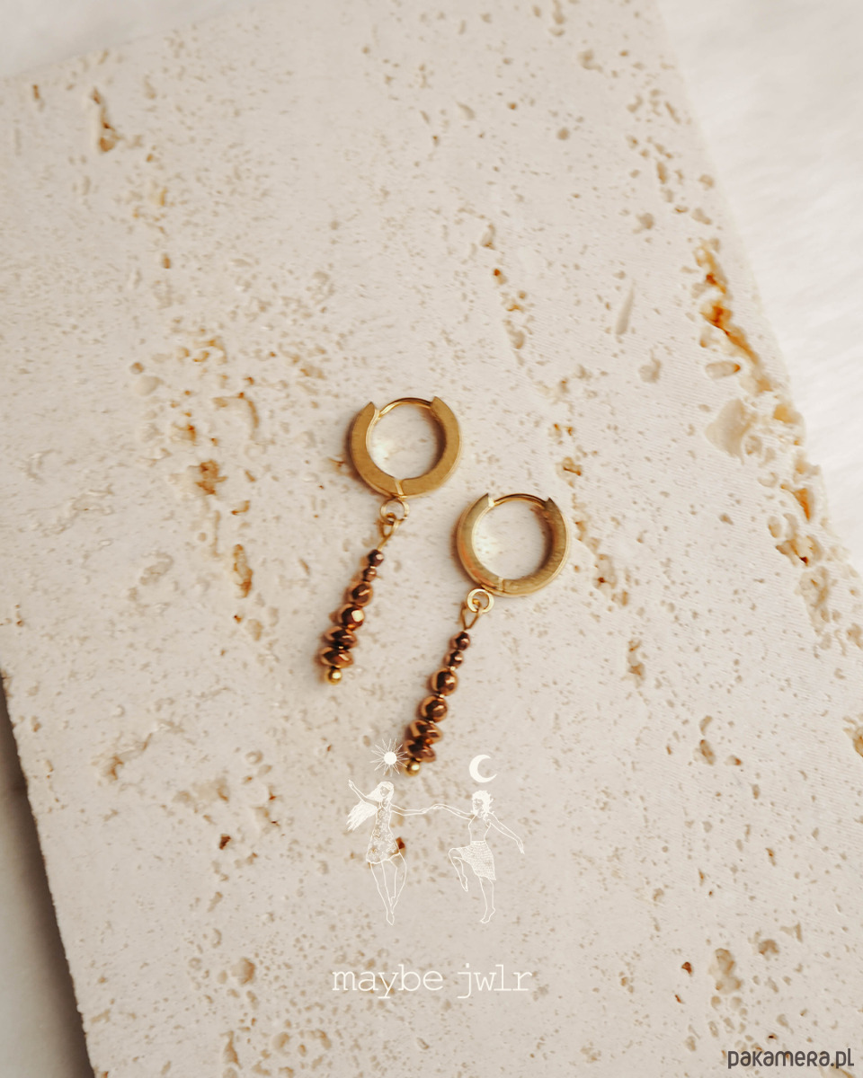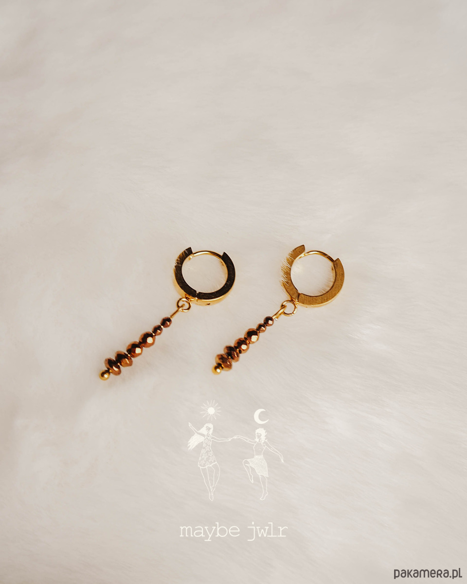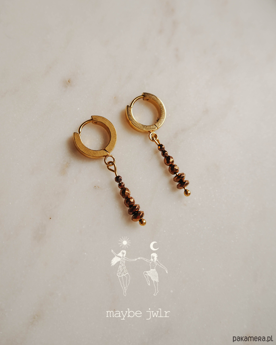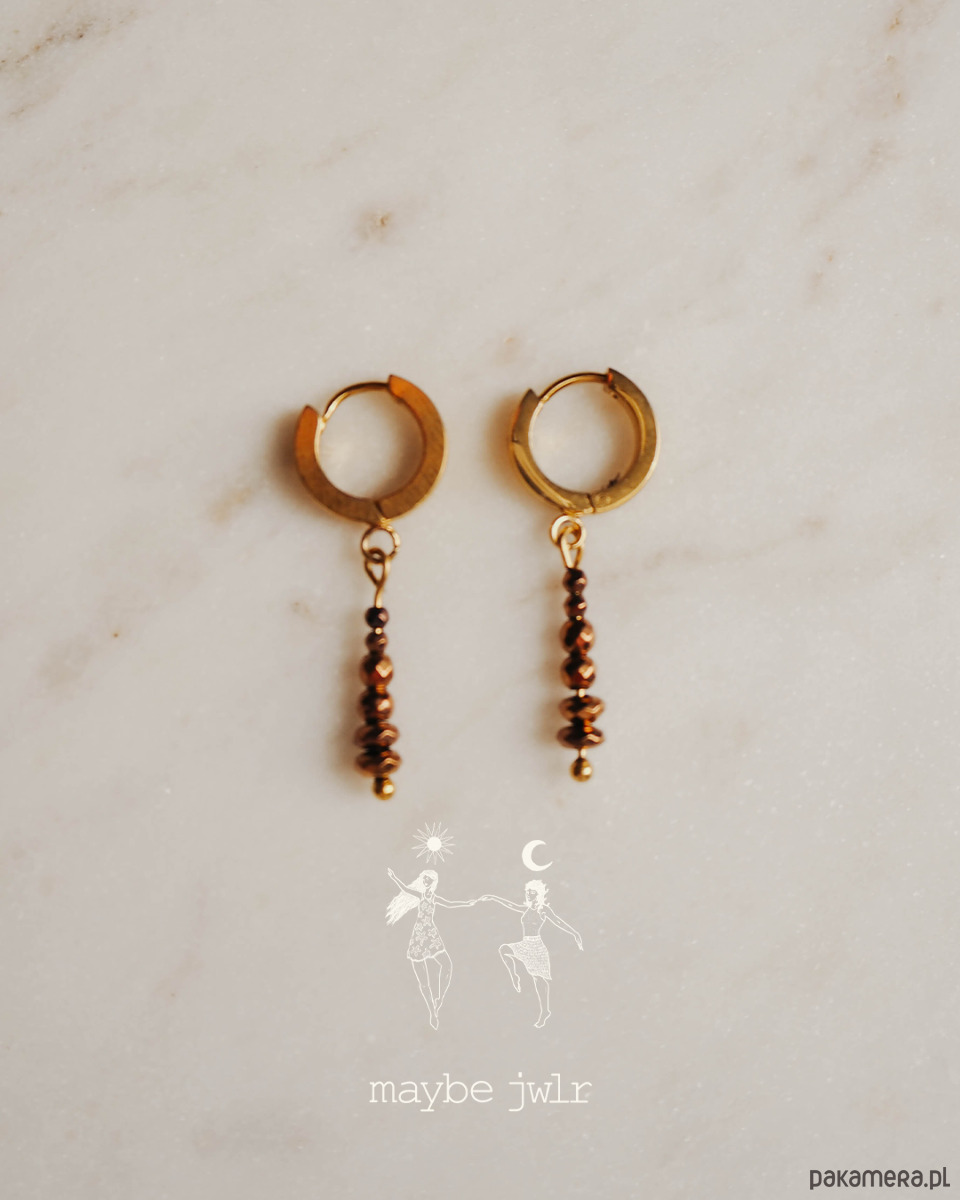 Kolczyki złote z zawieszkami z kamieni hematyt