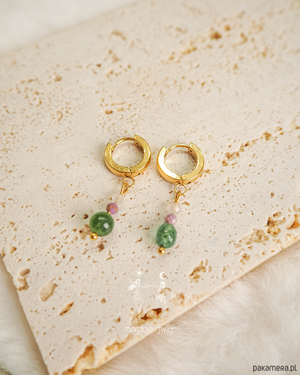 Kolczyki złote z zawieszkami z kamieni
