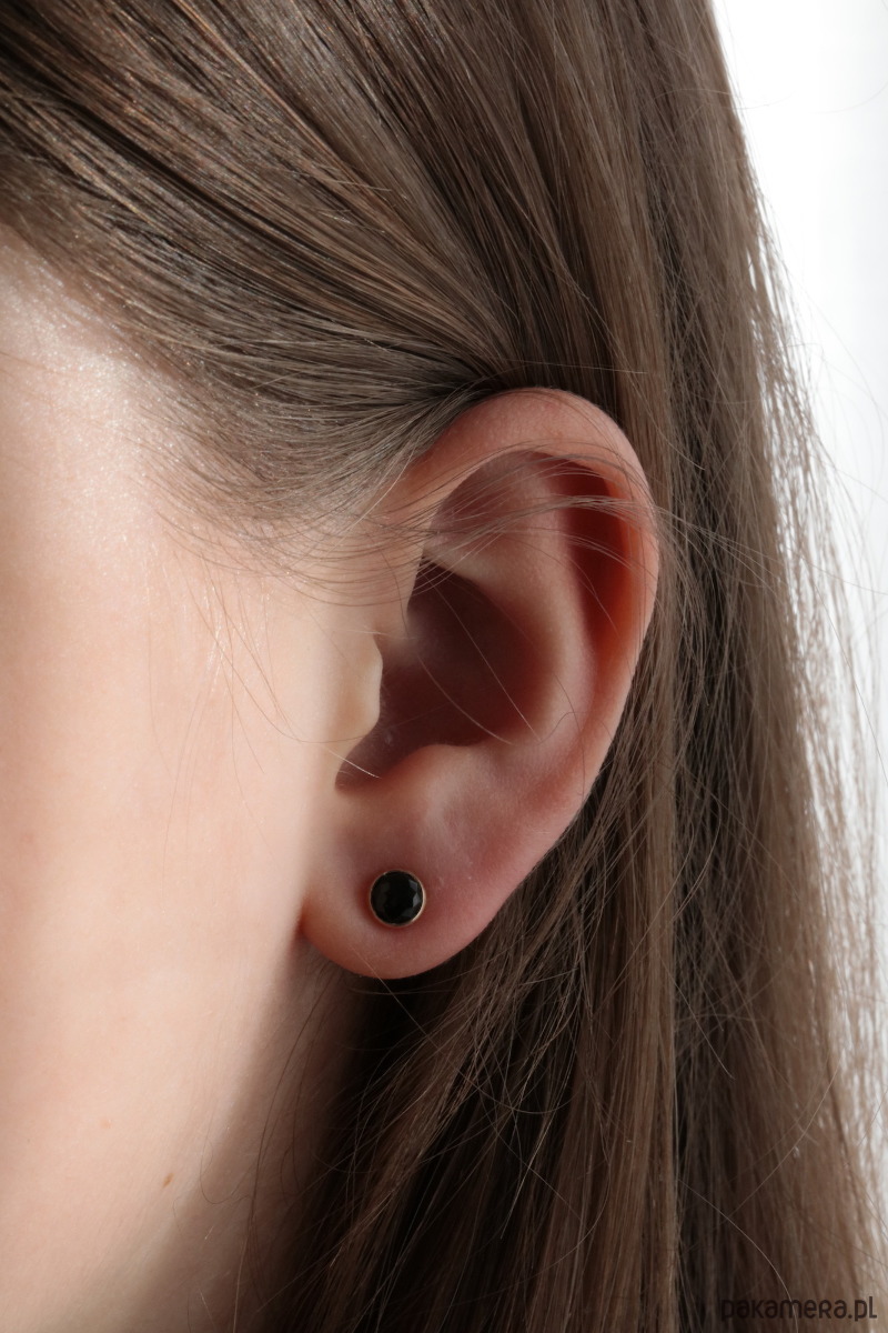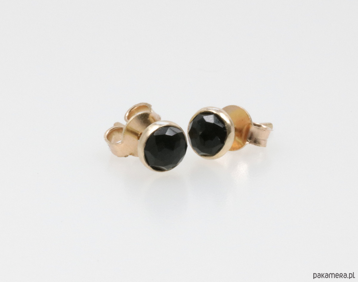 Delikatne proste kolczyki - sztyfty wykonane ze złota próby 585 (14k) z onyksami.
