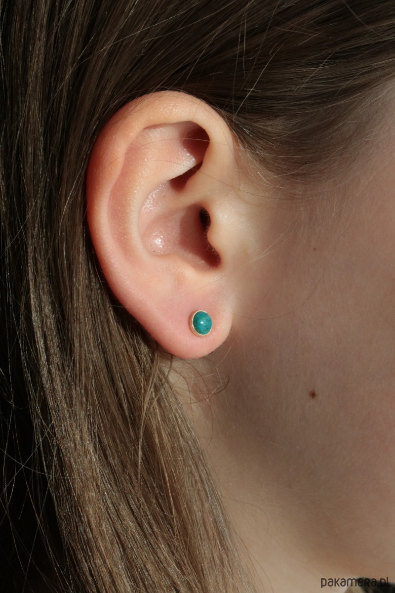 Kolczyki mogą być również wykonane z turkusami, masą perłową lub ametystem.