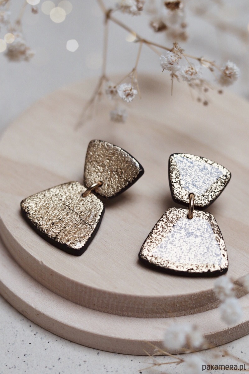 Kolczyki utrzymane są w złoto-czarnej kolorystyce i ozdobione lśniącym wykończeniem - powłoką z żywicy UV.