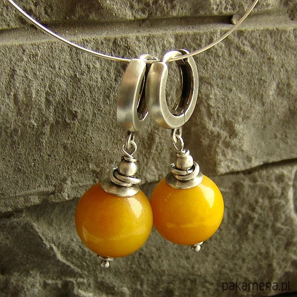Proste, minimalistyczne kolczyki na co dzień. Wykonane w całości z oksydowanego srebra próby 925 oraz kul jadeitu o głębokim, żótym kolorze wielkości 1,2 cm. Długość całkowita to 3,5 cm. Bigle typu kajdanki. Ozdobnie zapakowane.