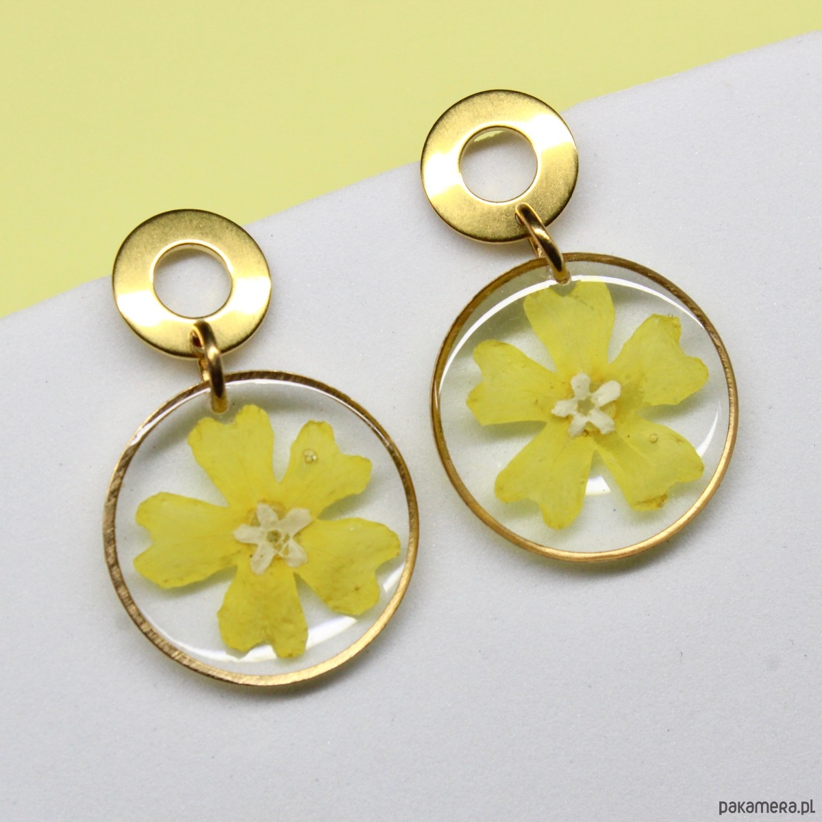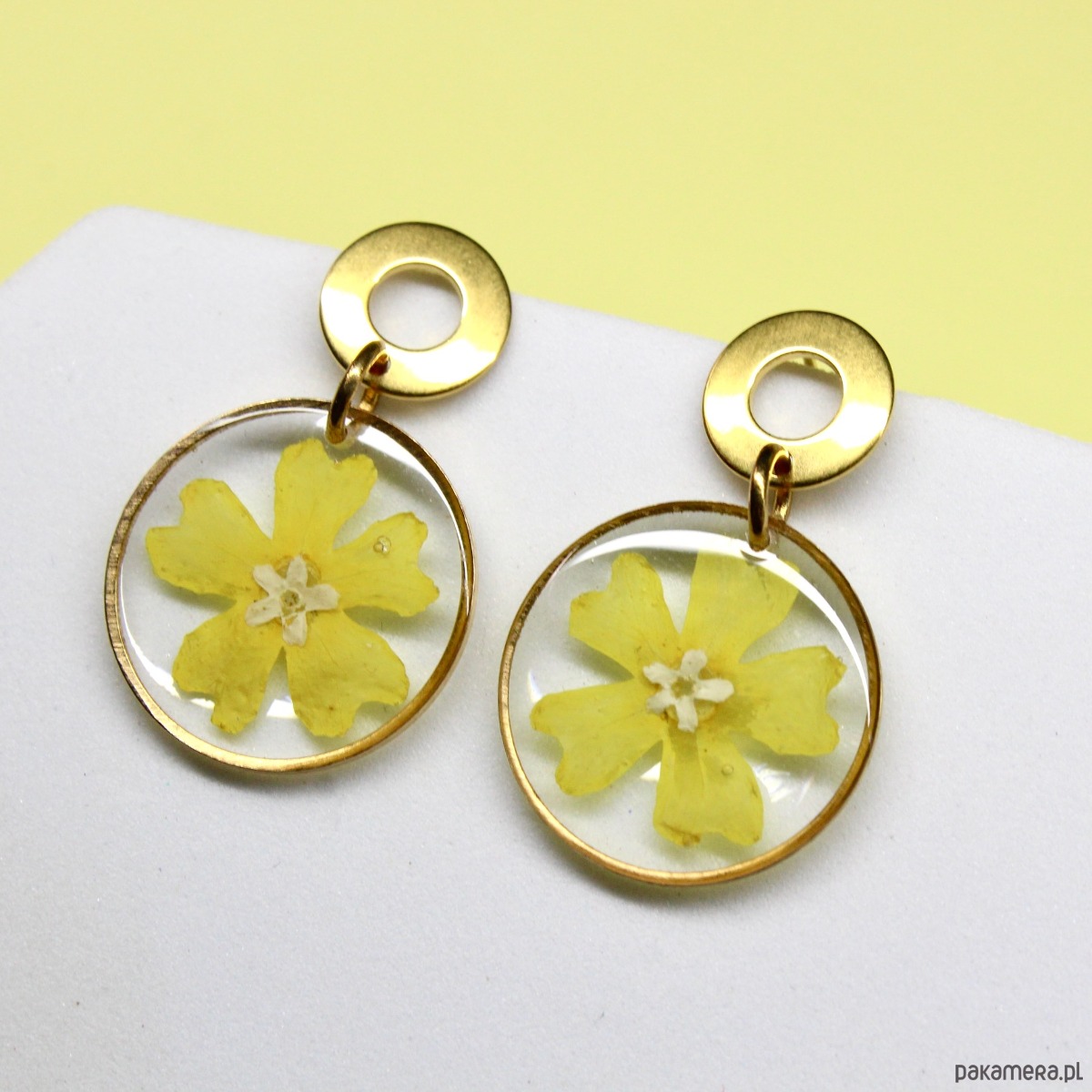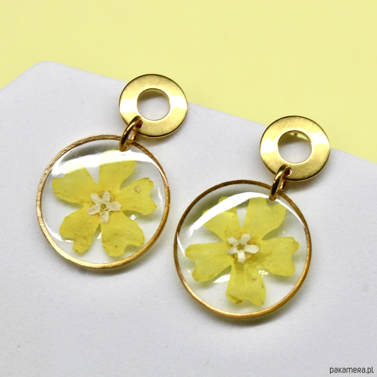 Kolczyki żółte kwiatki żywica