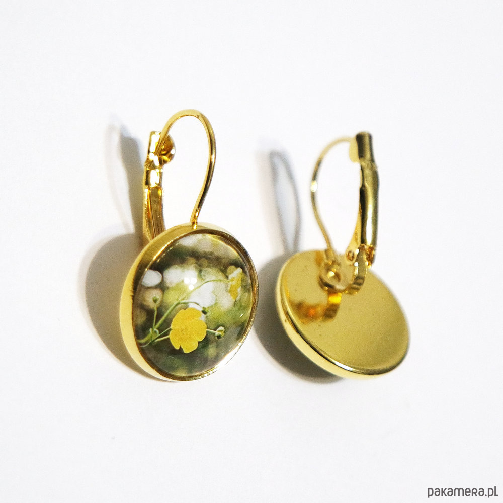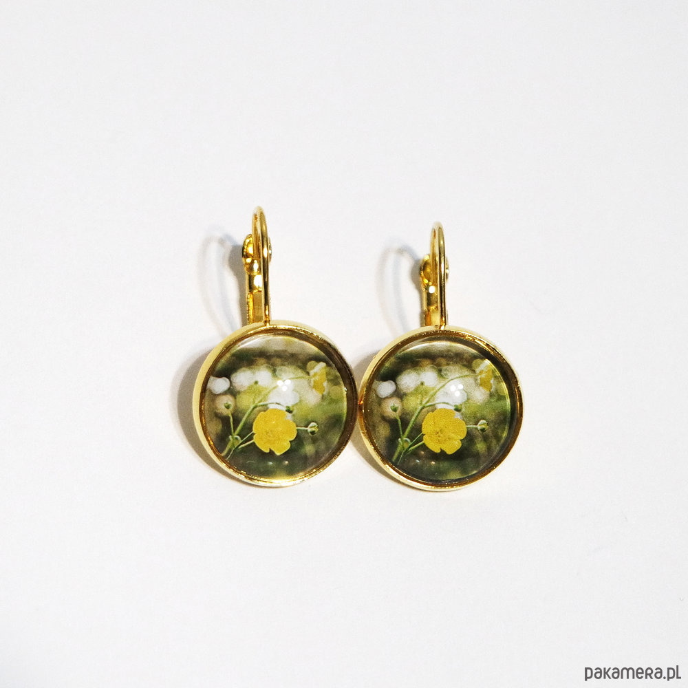 Kolczyki - Żółty kwiat, złote