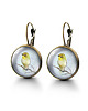 Grafika ukryta w prostych, eterycznych kolczykach, pod osłoną przeźroczystego półokrągłego szkiełka.