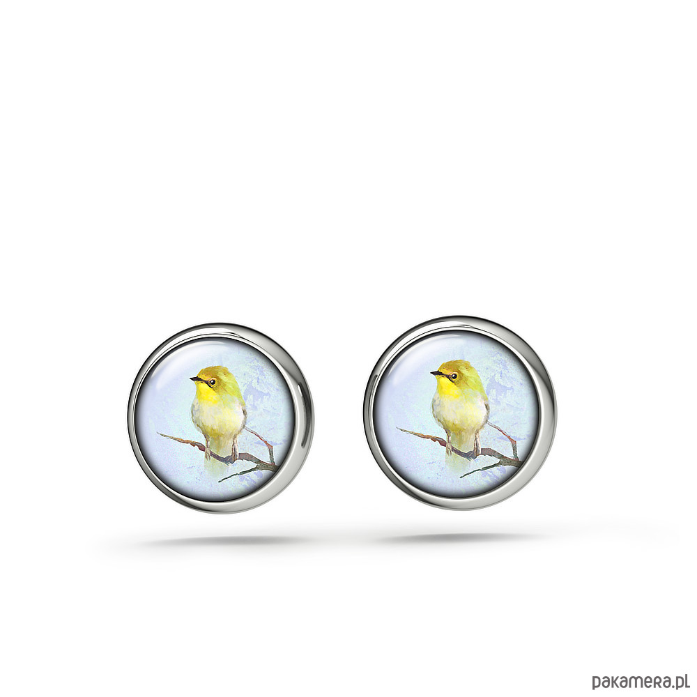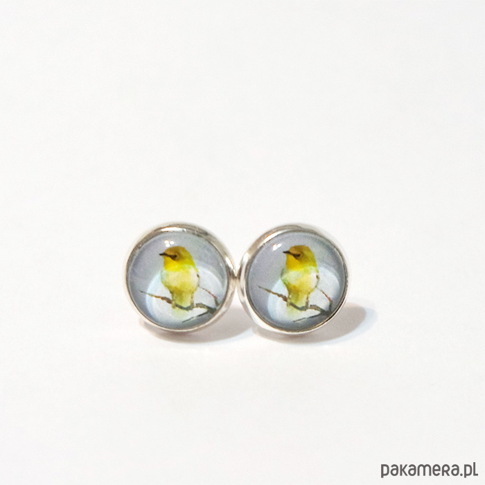 Kolczyki - Żółty ptaszek - sztyfty, mini