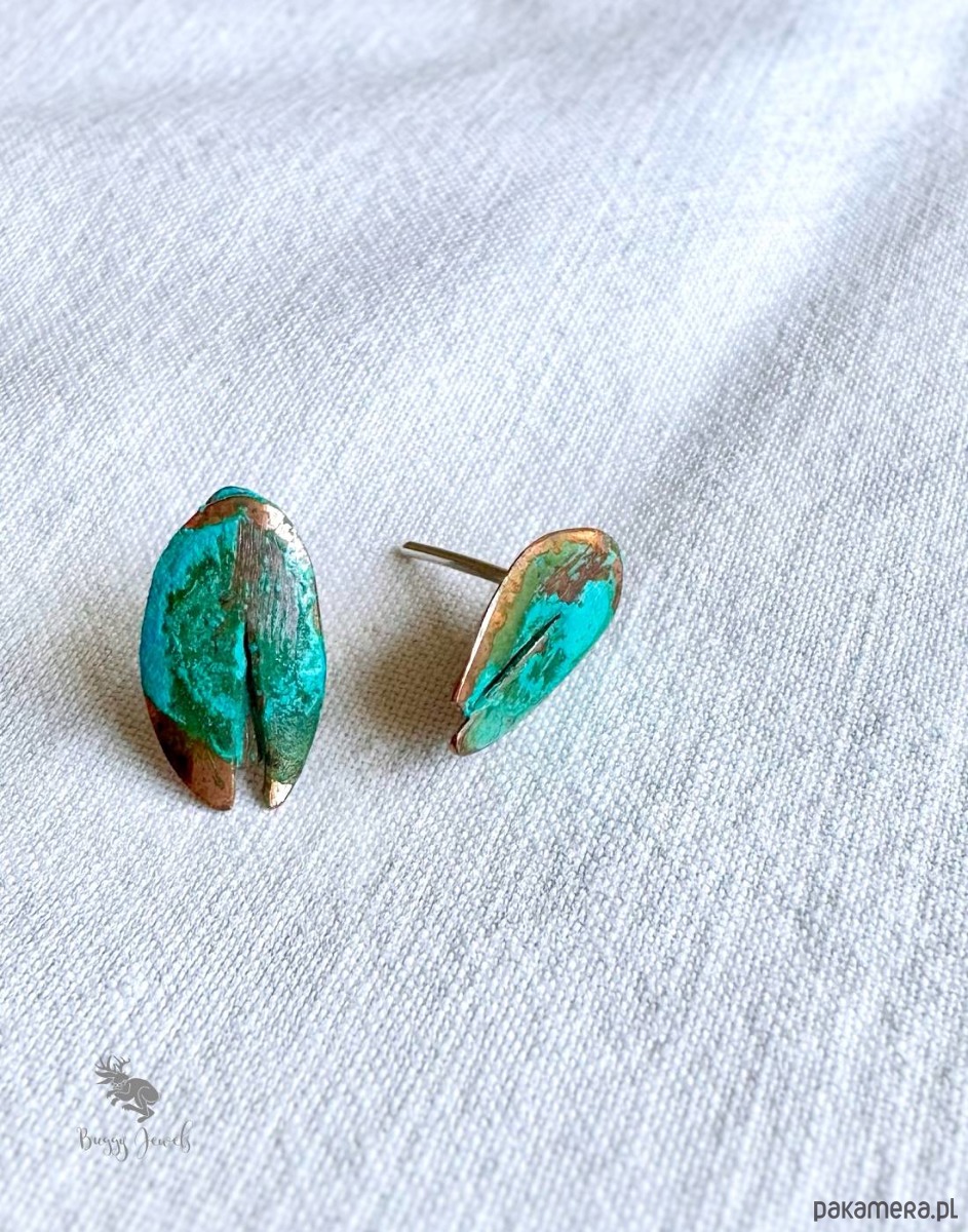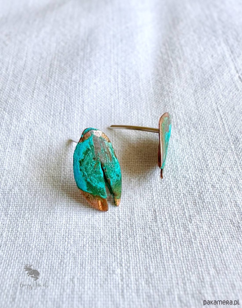 Całość wykonana z miedzi, która została delikatnie pokryta specjalną patyną o turkusowo- zielonym zabarwieniu, a następnie utrwalone lakierem.