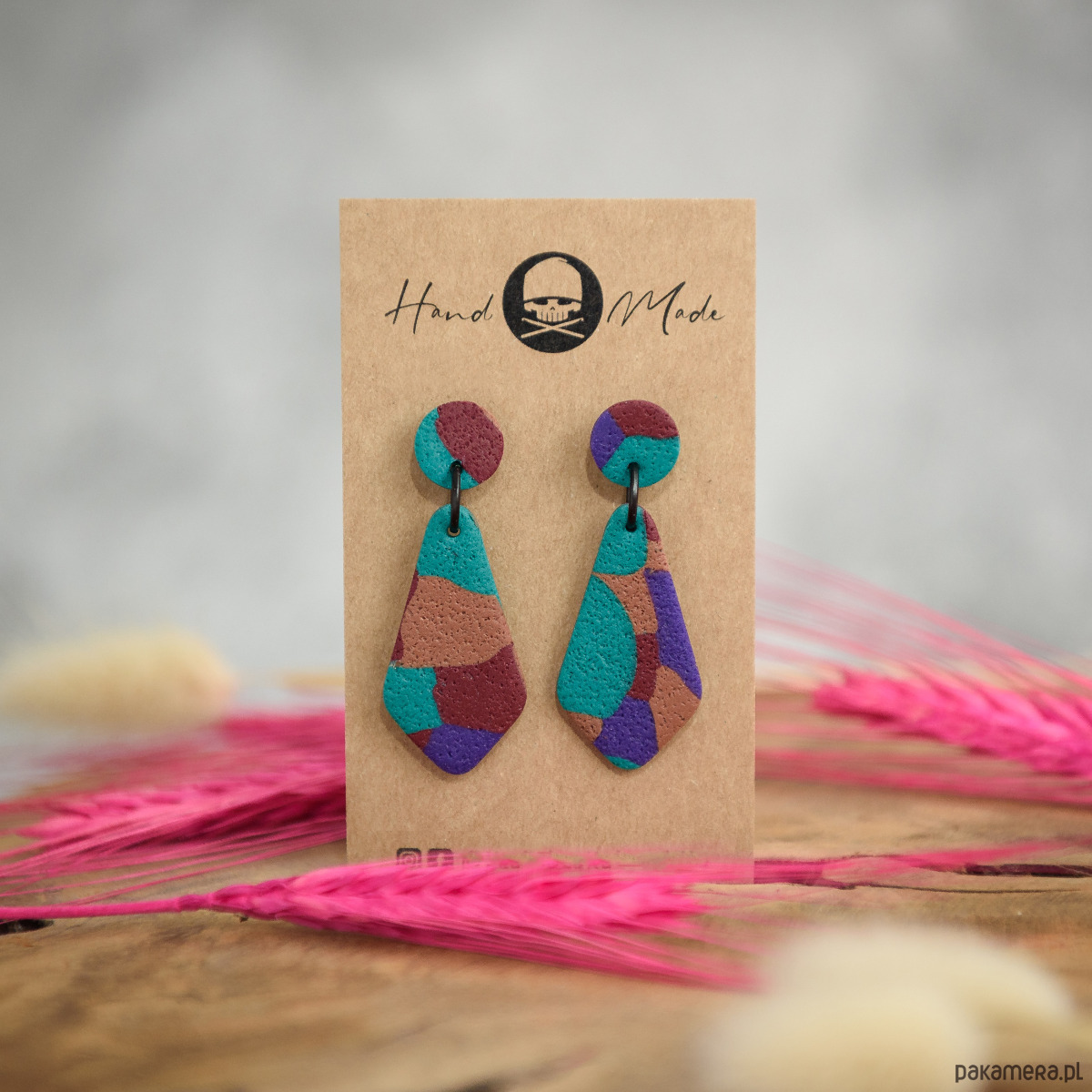 Kolczyki Zuza to wiszące, oryginalne kolczyki, z subtelną fakturą, wykonane ręcznie z profesjonalnej glinki polimerowej, ze sztyftem ze stali szlachetnej. Są lekkie, dość elastyczne i dzięki temu wygodne oraz odporne na uszkodzenia.