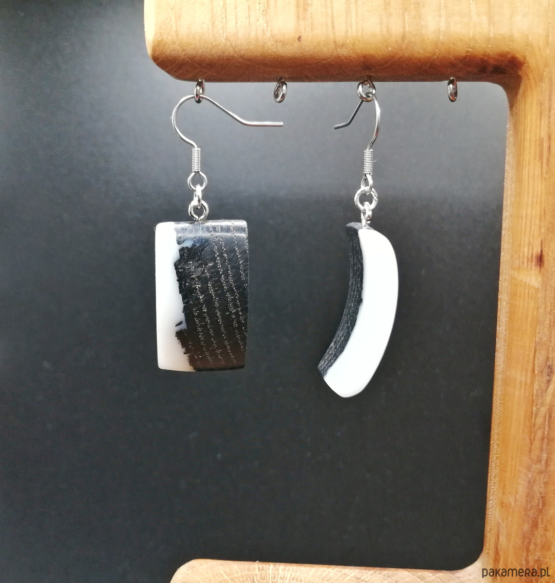 Własnoręcznie wykonana kolczyki . Drewno to czarny dąb. W zestawie dodaje sznurek długości 75cm kolor czarny , szary bądź brązowy Wymiary wisiorka 2,9cmx1,6cm