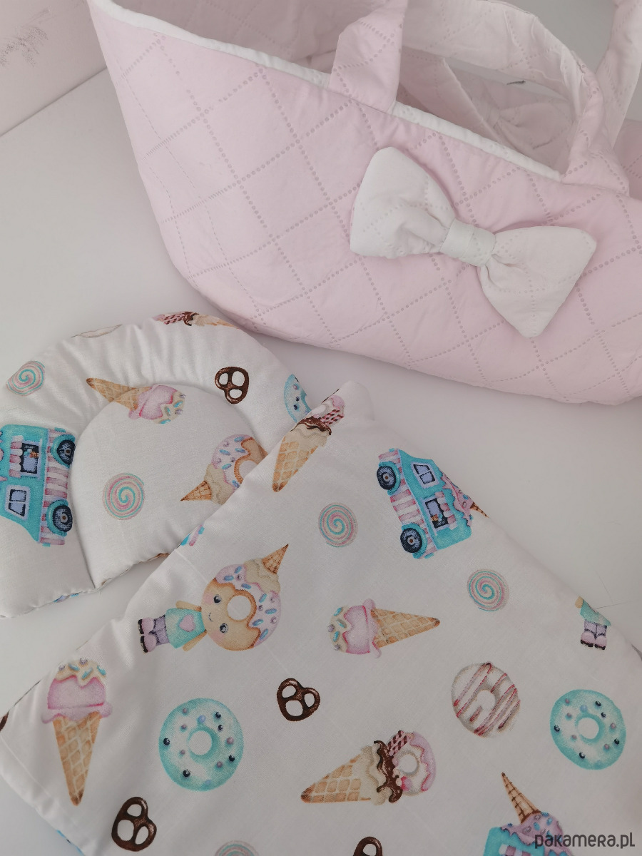 Szukasz ładnej kołderki dla lalki? Napisz jakie interesują Cię wzory, kolory, styl, albo wyślij zdjęcie pokoju, inspiracje, a my spróbujemy pomóc i uszyć ją dla Ciebie. Chcesz aby idealnie pasowała do kupionego wózeczka? Możemy delikatnie zmienić rozmiar - powiększyć ją, pomniejszyć. Chcesz aby Twoje dziecko również miało taki sam kocyk, kołderkę? Nie ma problemu:). Poduszeczka może być zarówno kwadratowa jak i półokrągła, lub w kształcie serduszka. Może mieć falbanki, być wykończona koronką albo posiadać wyhaftowany napis.