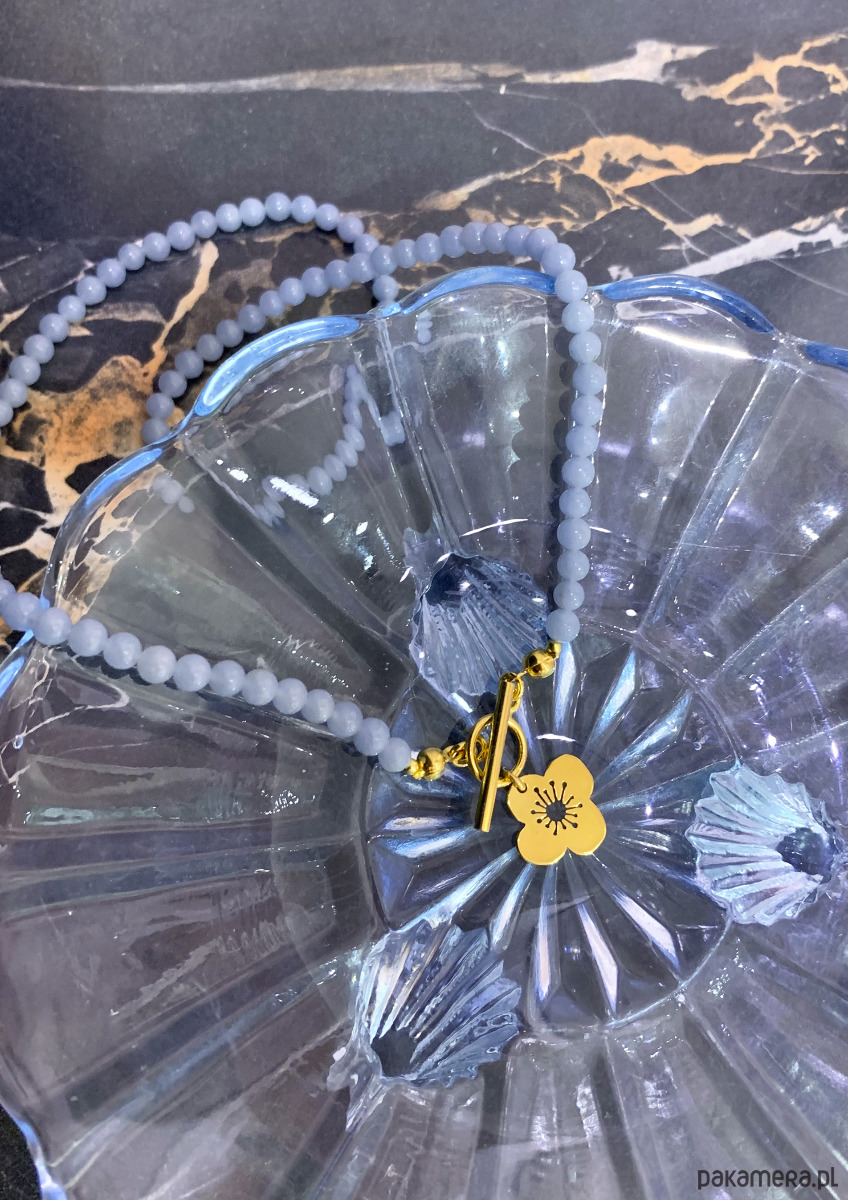 Anemone sky- Naszyjnik z kwiatuszkiem zawilca z dodatkiem kamieni błękitnego angelitu.