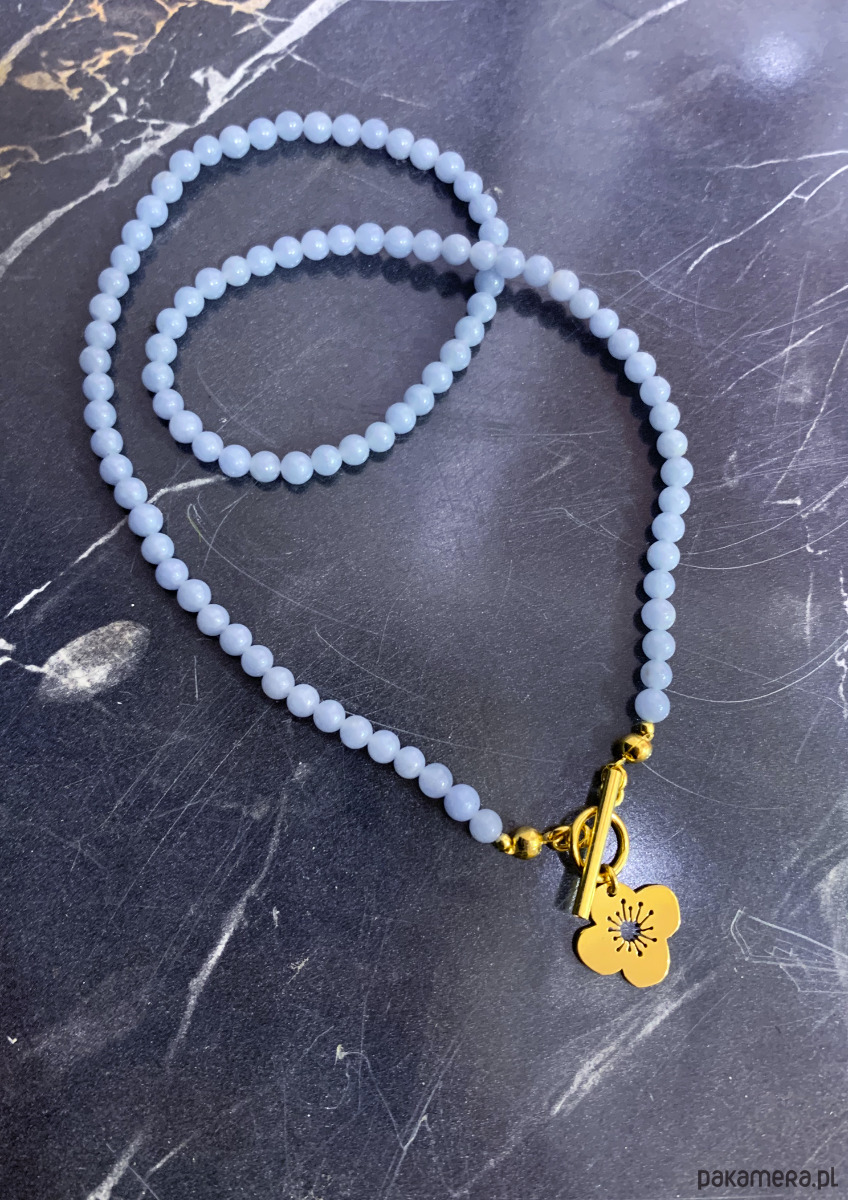 Anemone sky- Naszyjnik z kwiatuszkiem zawilca z dodatkiem kamieni błękitnego angelitu.