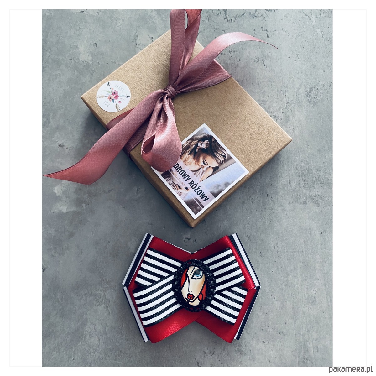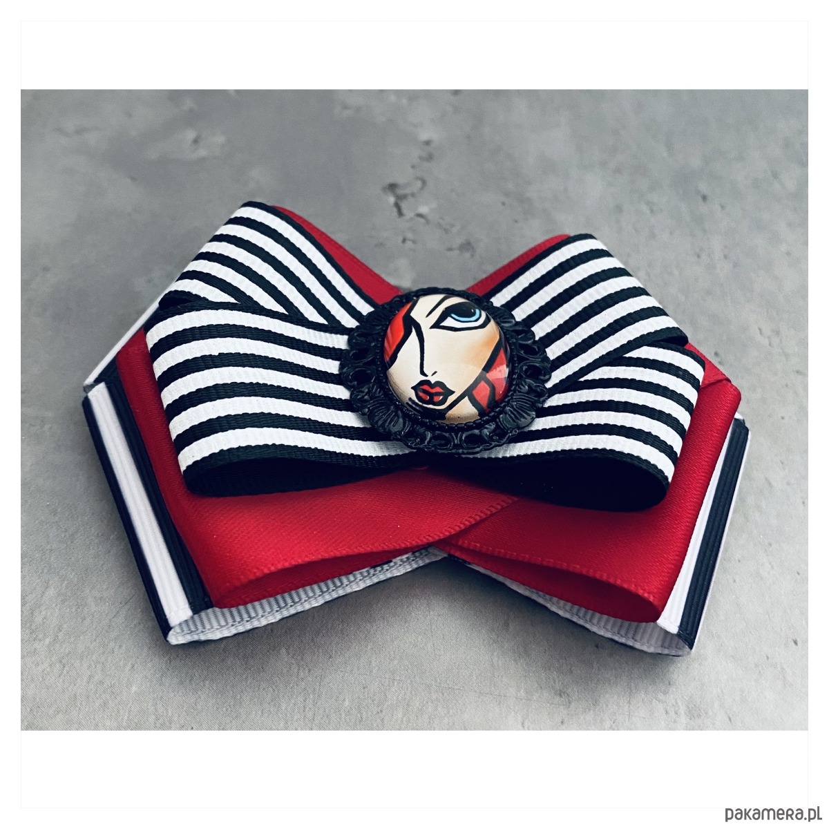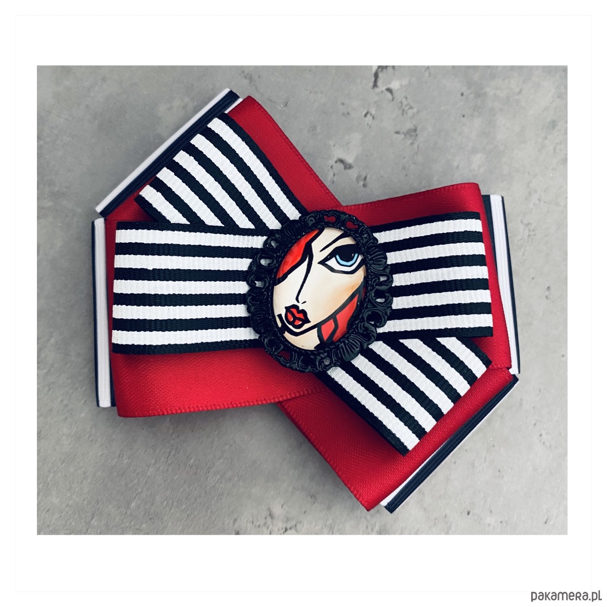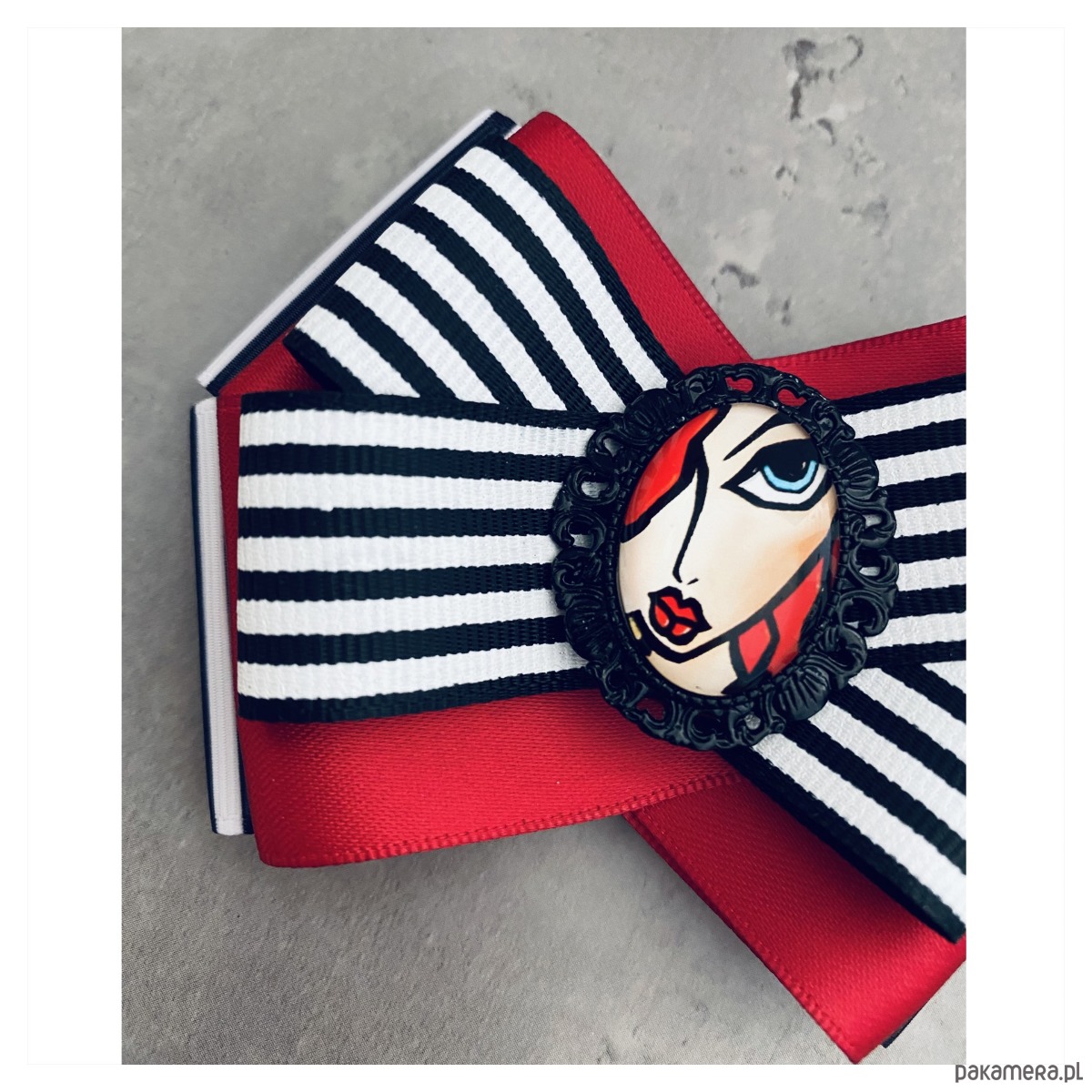 Broszka wykonana z wysokiej jakości taśm i dodatków.