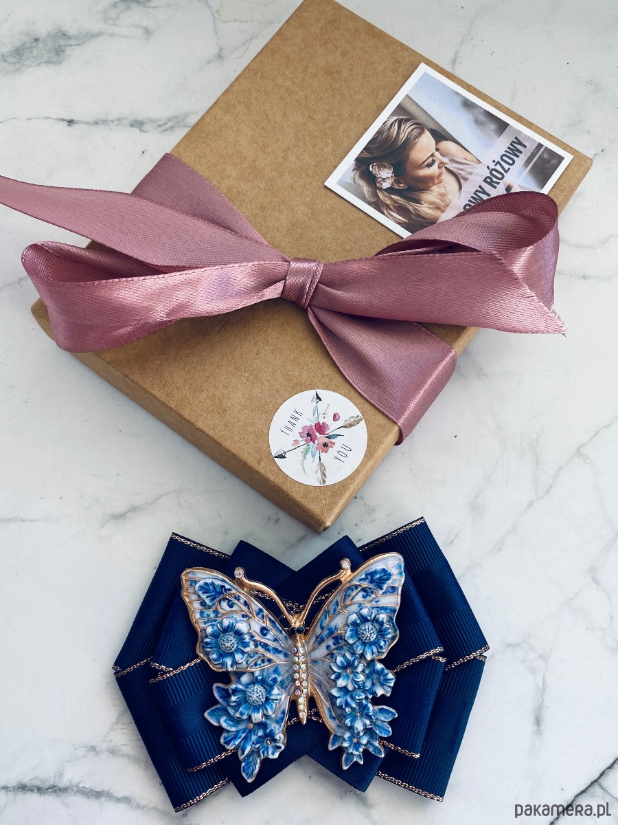 Broszka wykonana z wysokiej jakości taśm i dodatków.