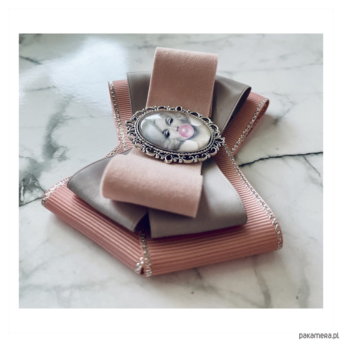 Broszka wykonana z wysokiej jakości taśm i dodatków.