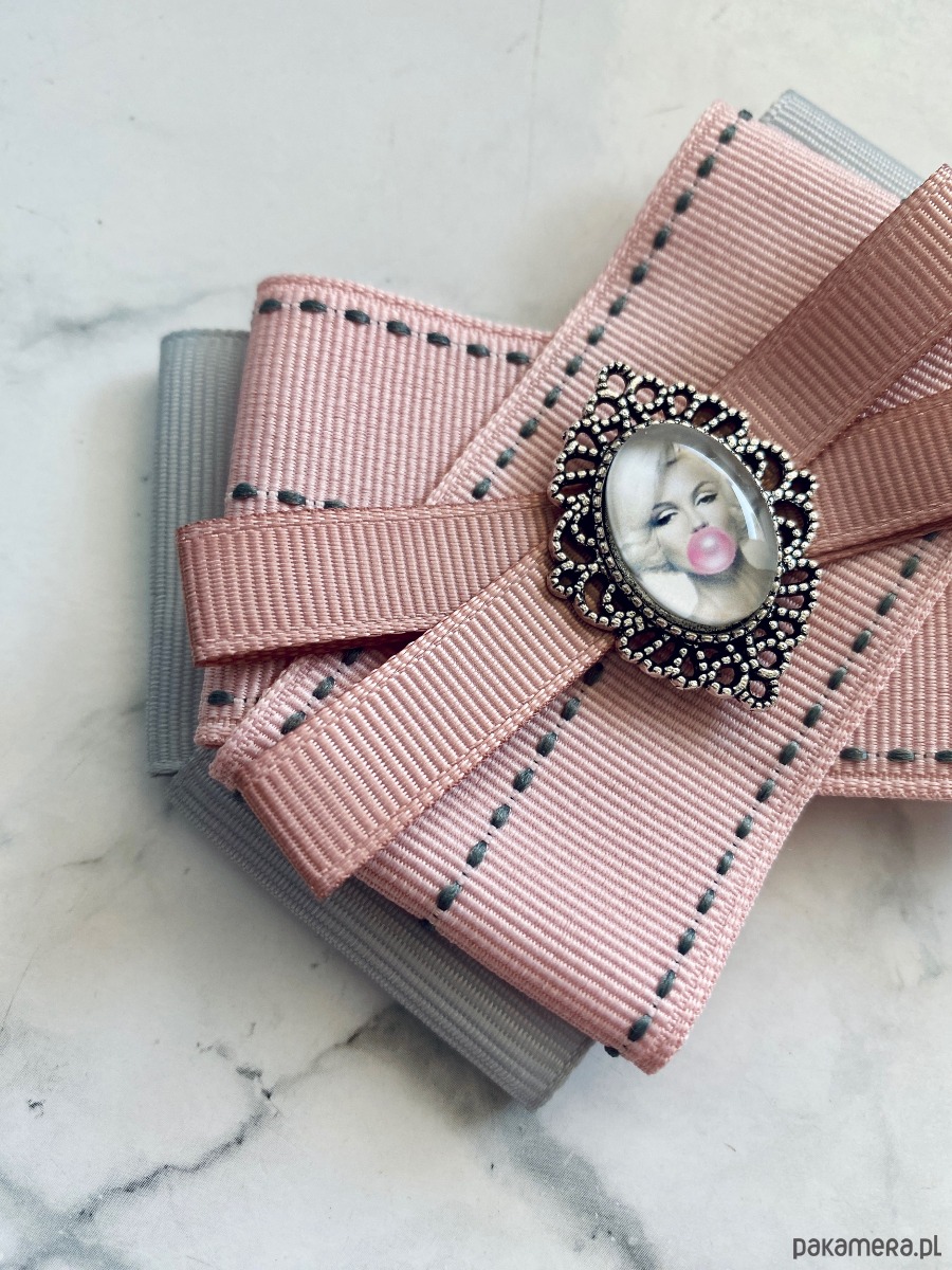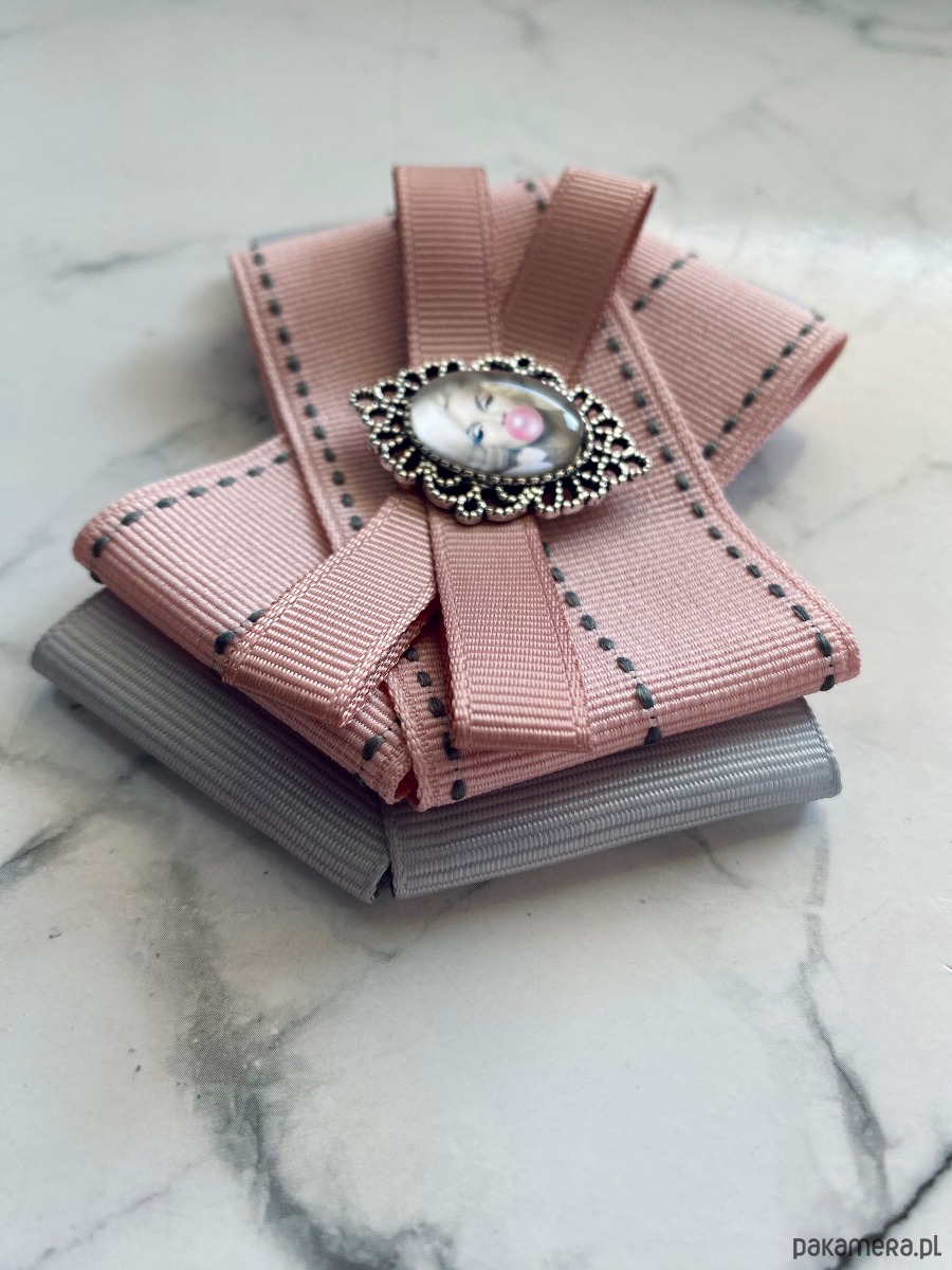 Broszka wykonana z wysokiej jakości taśm i dodatków.