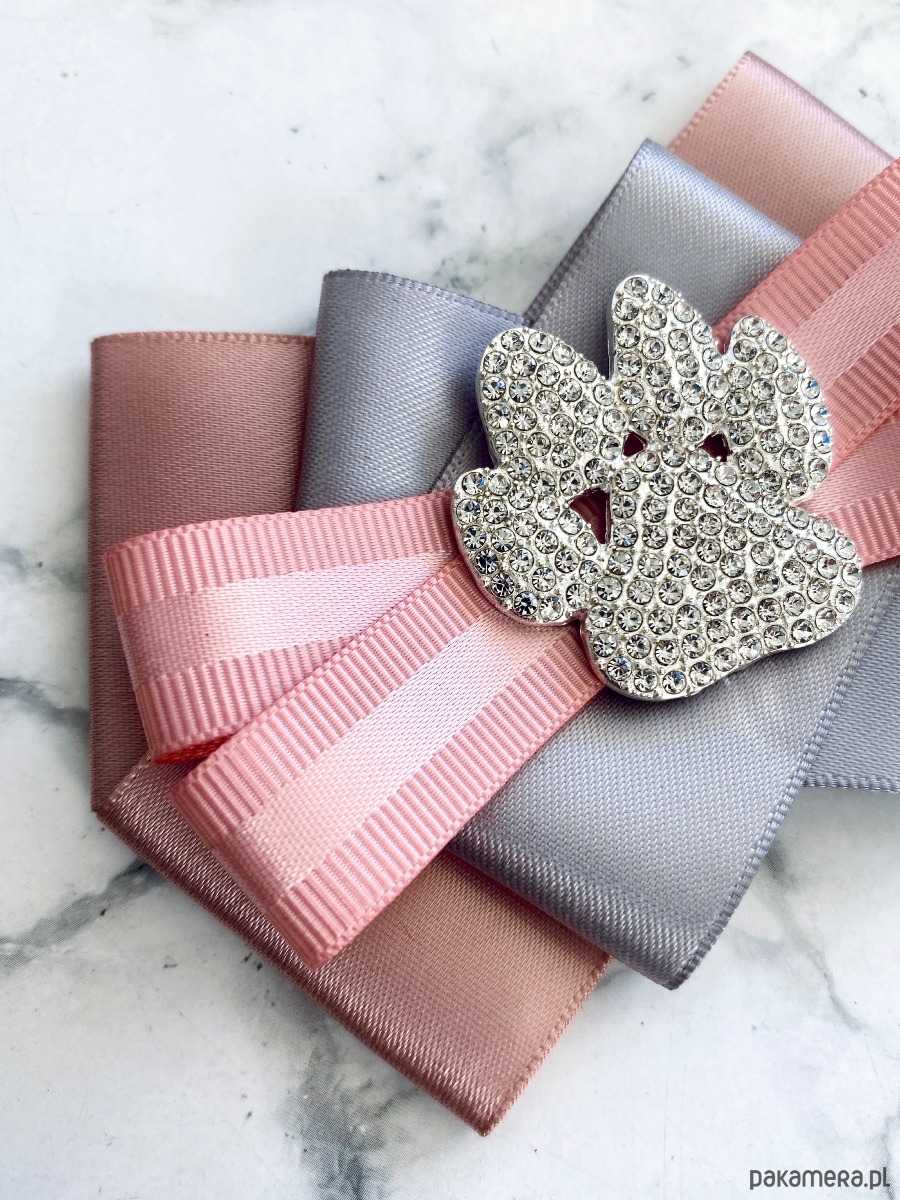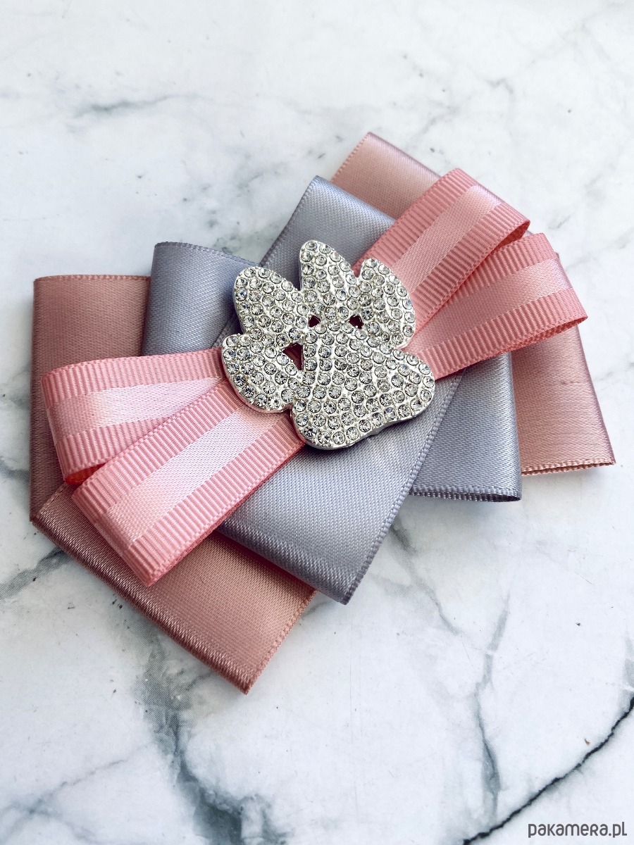 Broszka wykonana z wysokiej jakości taśm i dodatków.