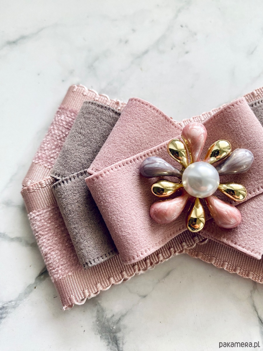 Niesamowita Brosza w pastelowych kolorach z dodatkiem zamszowych wstążek.