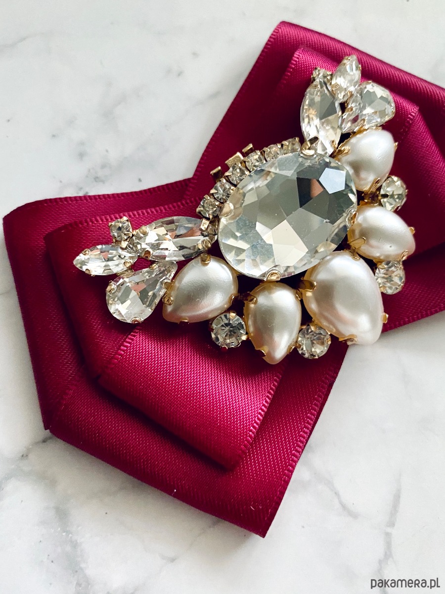 Na środku imponująca ozdoba biżuteryjna duże kryształy wraz z pięknymi perłami.