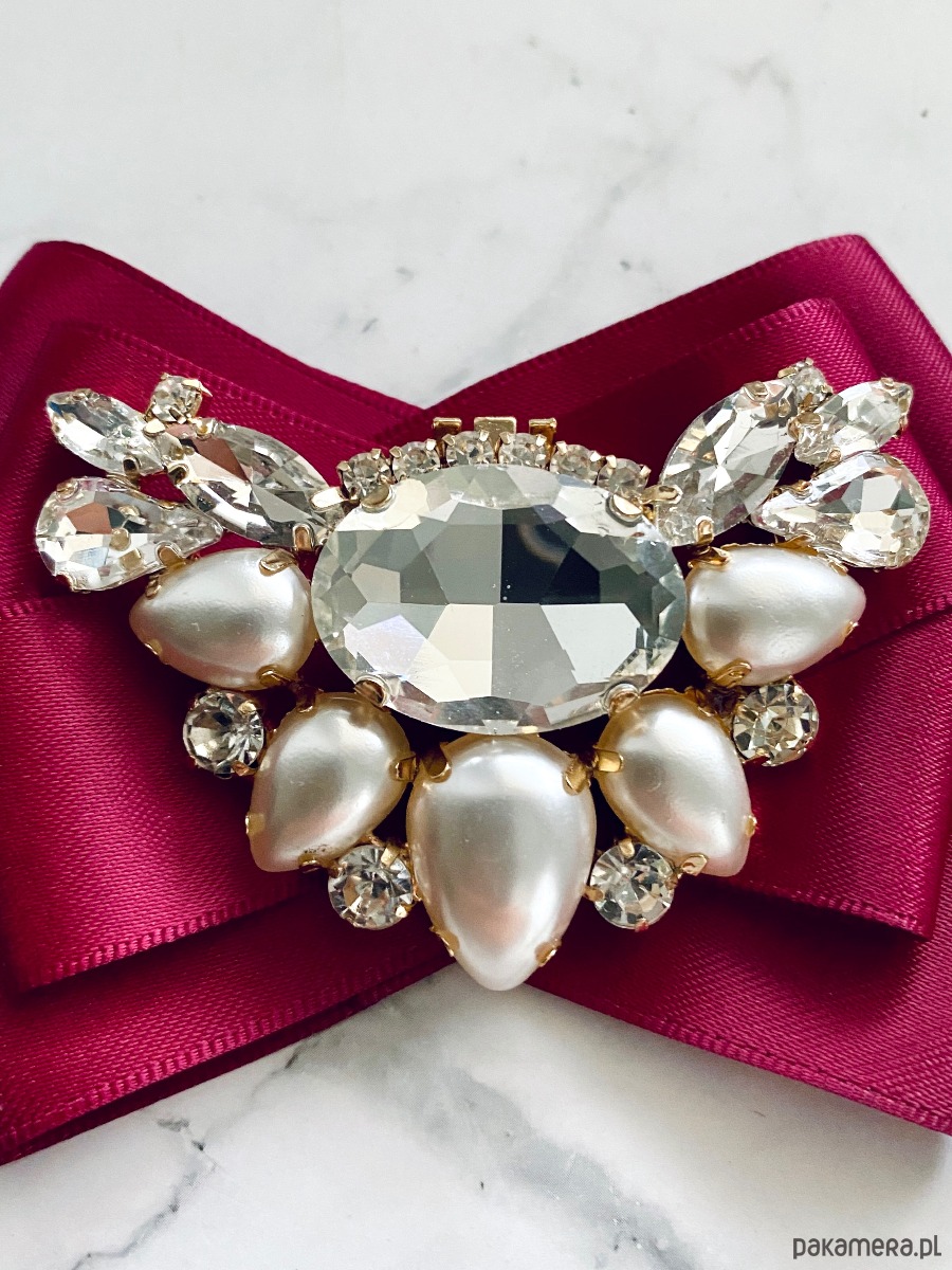 Broszka wykonana z wysokiej jakości taśm i dodatków.