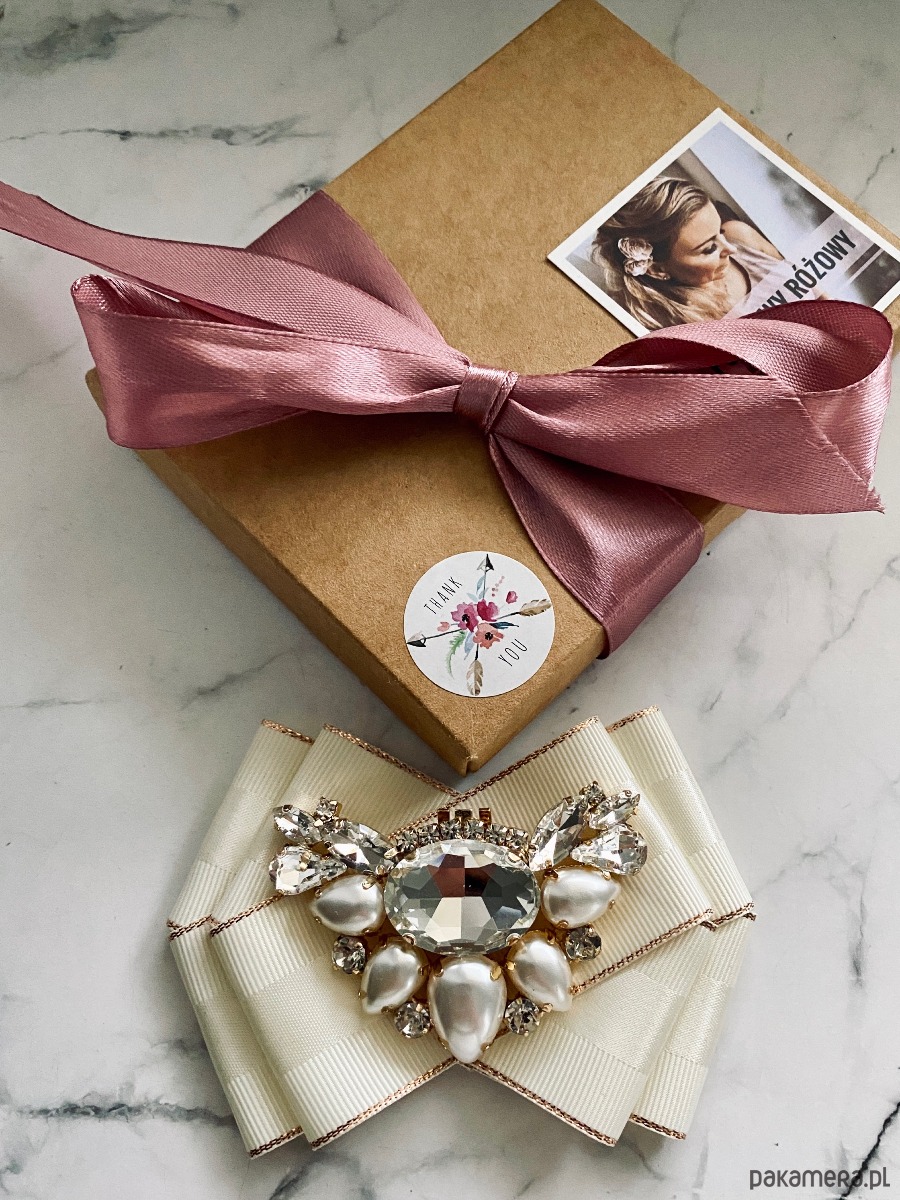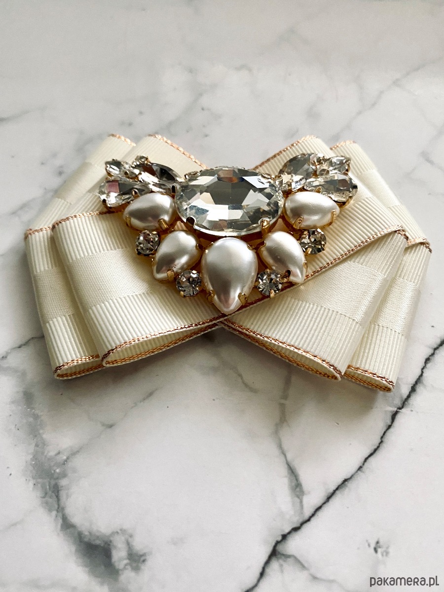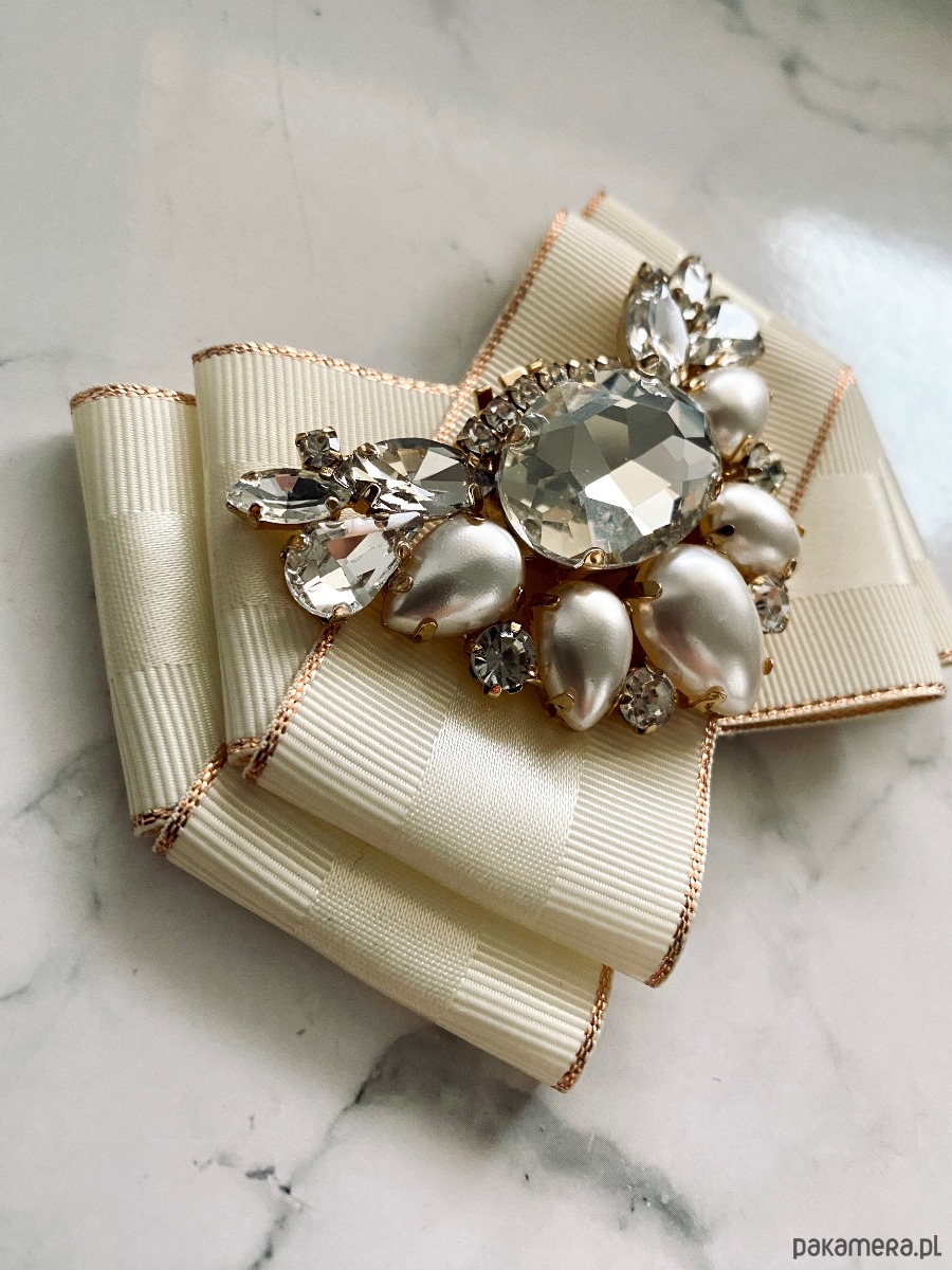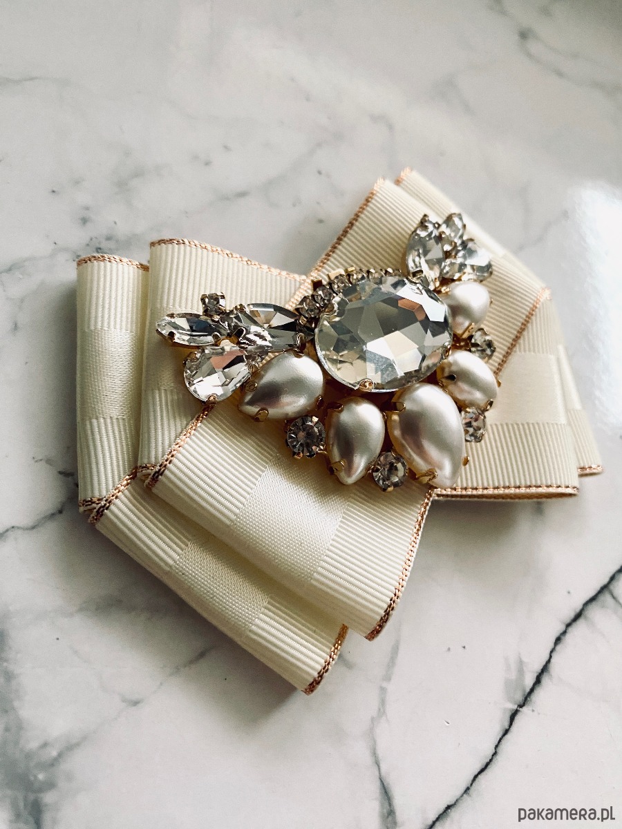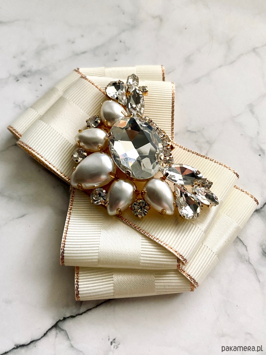 Broszka wykonana z wysokiej jakości taśm i dodatków.