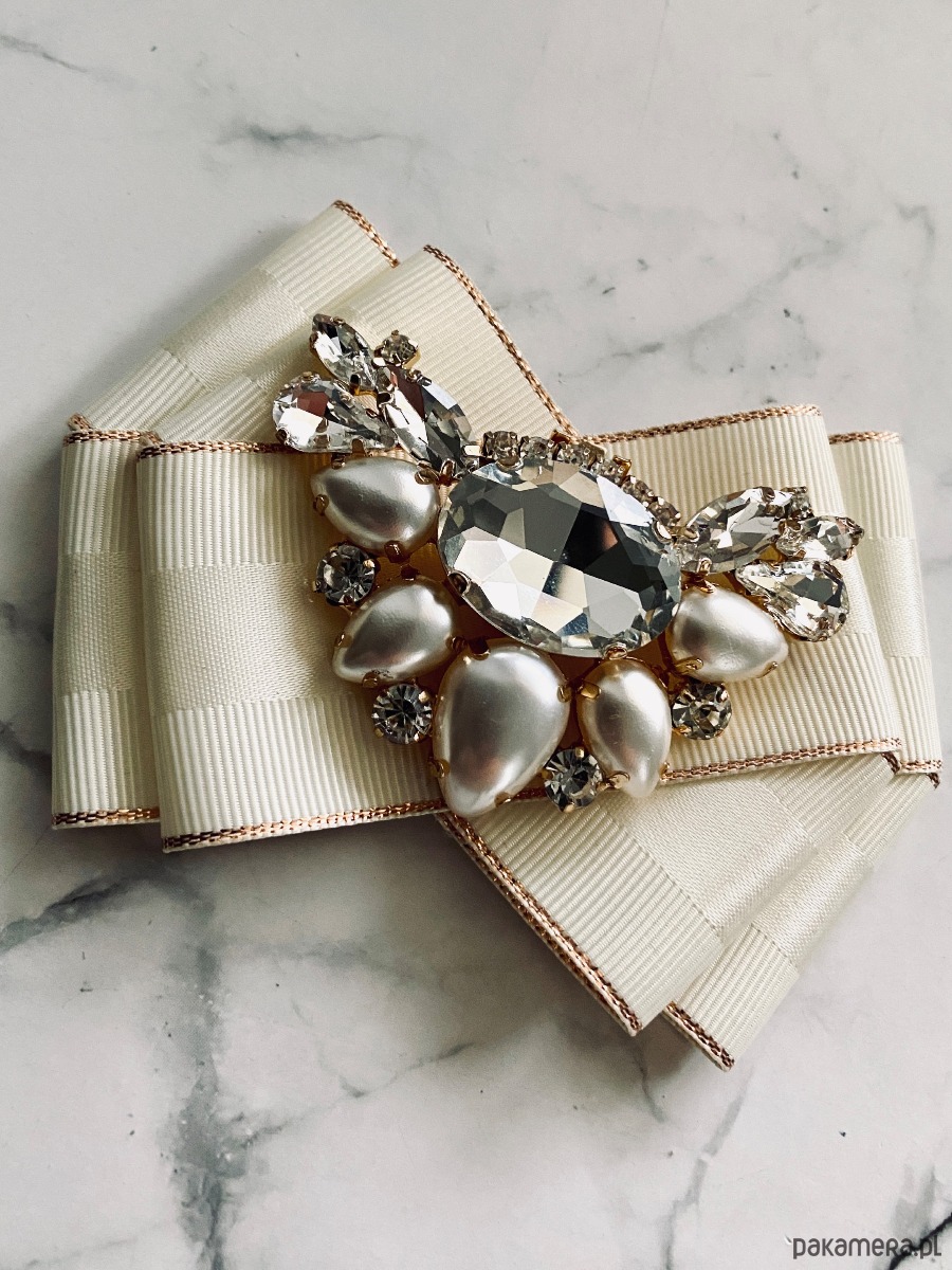 Broszka wykonana z wysokiej jakości taśm i dodatków.