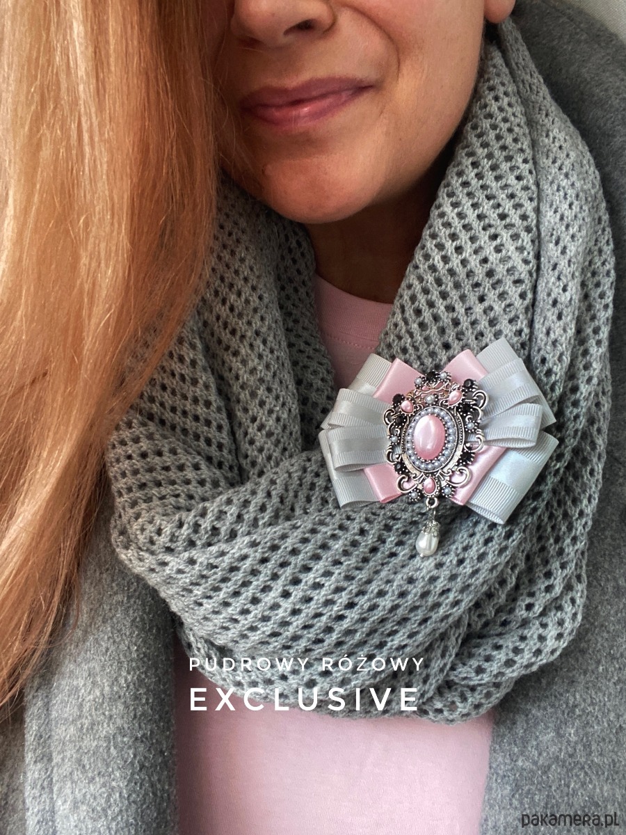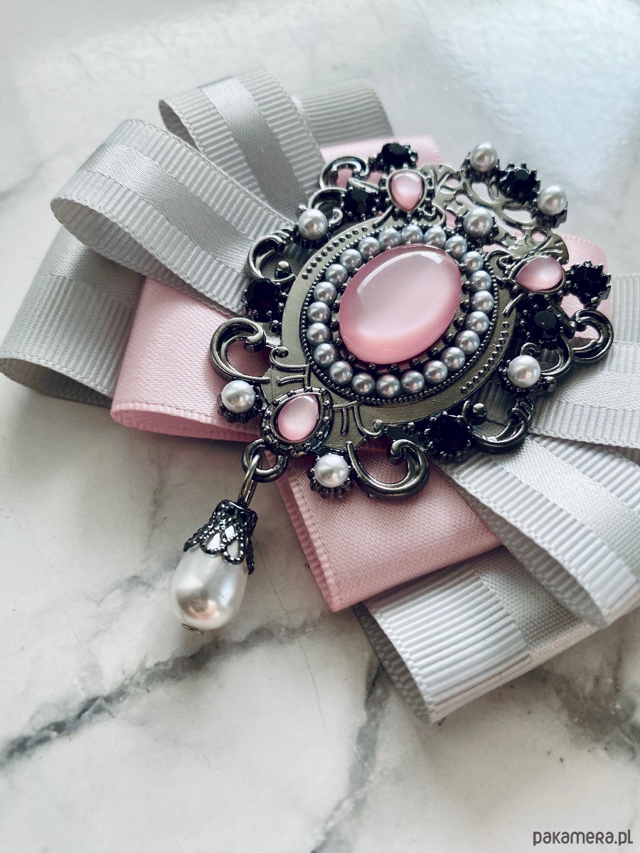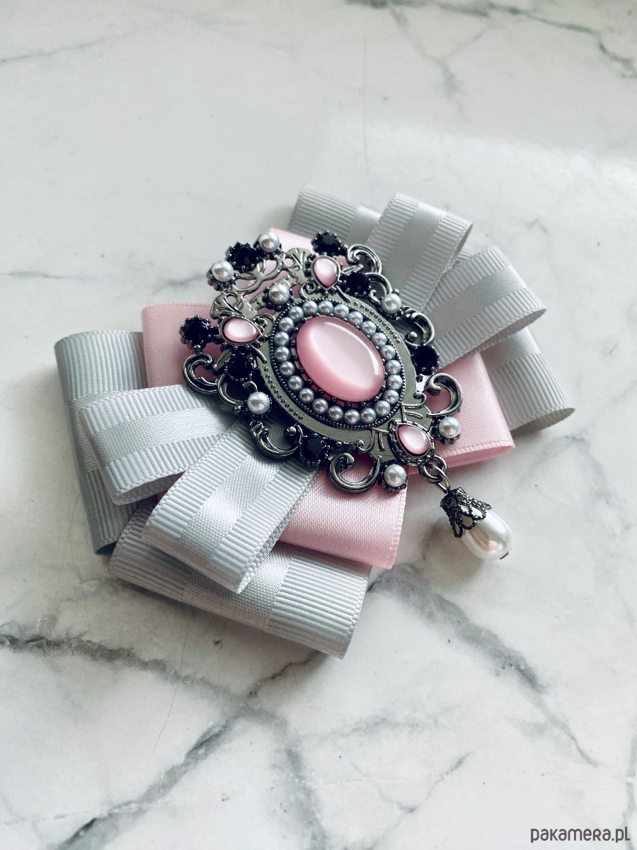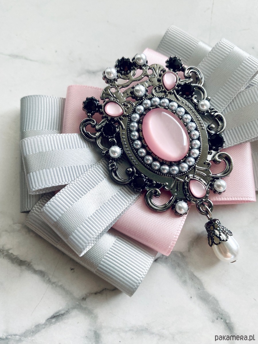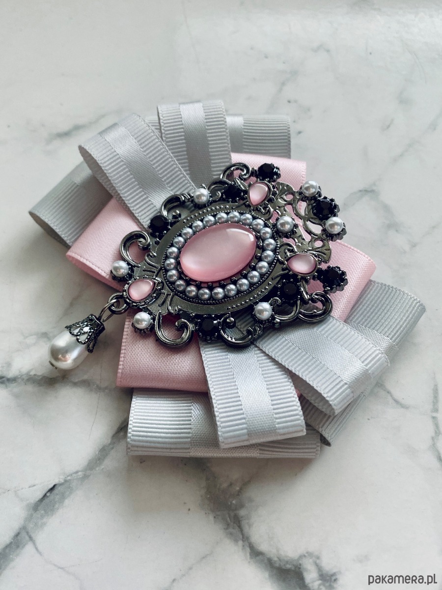 Broszka wykonana z wysokiej jakości taśm i dodatków.