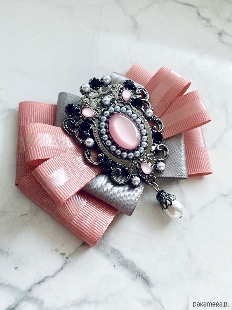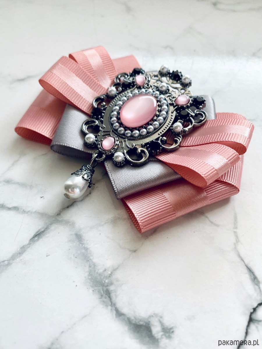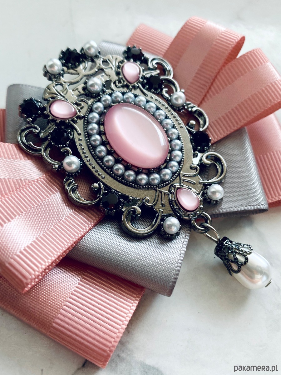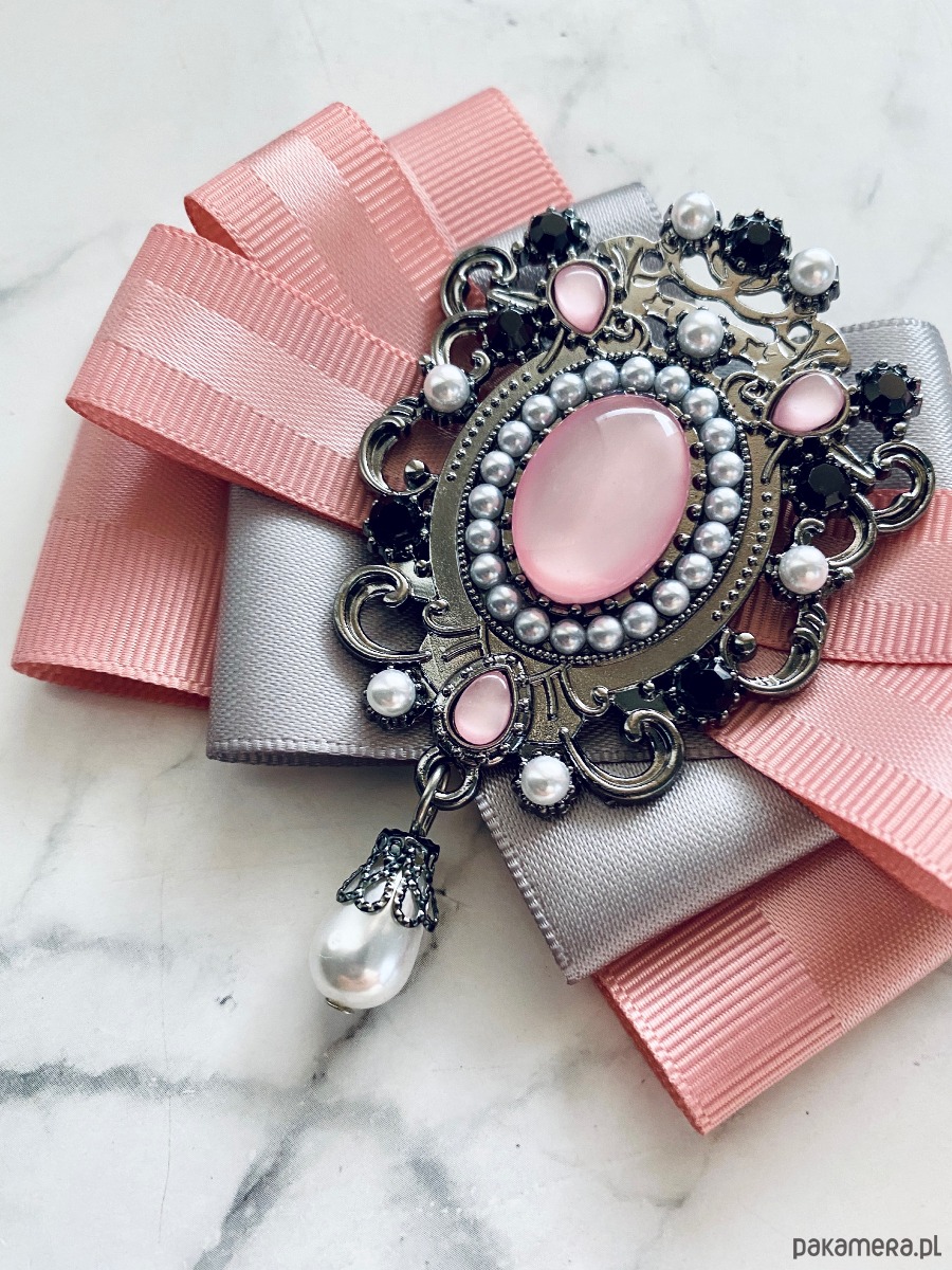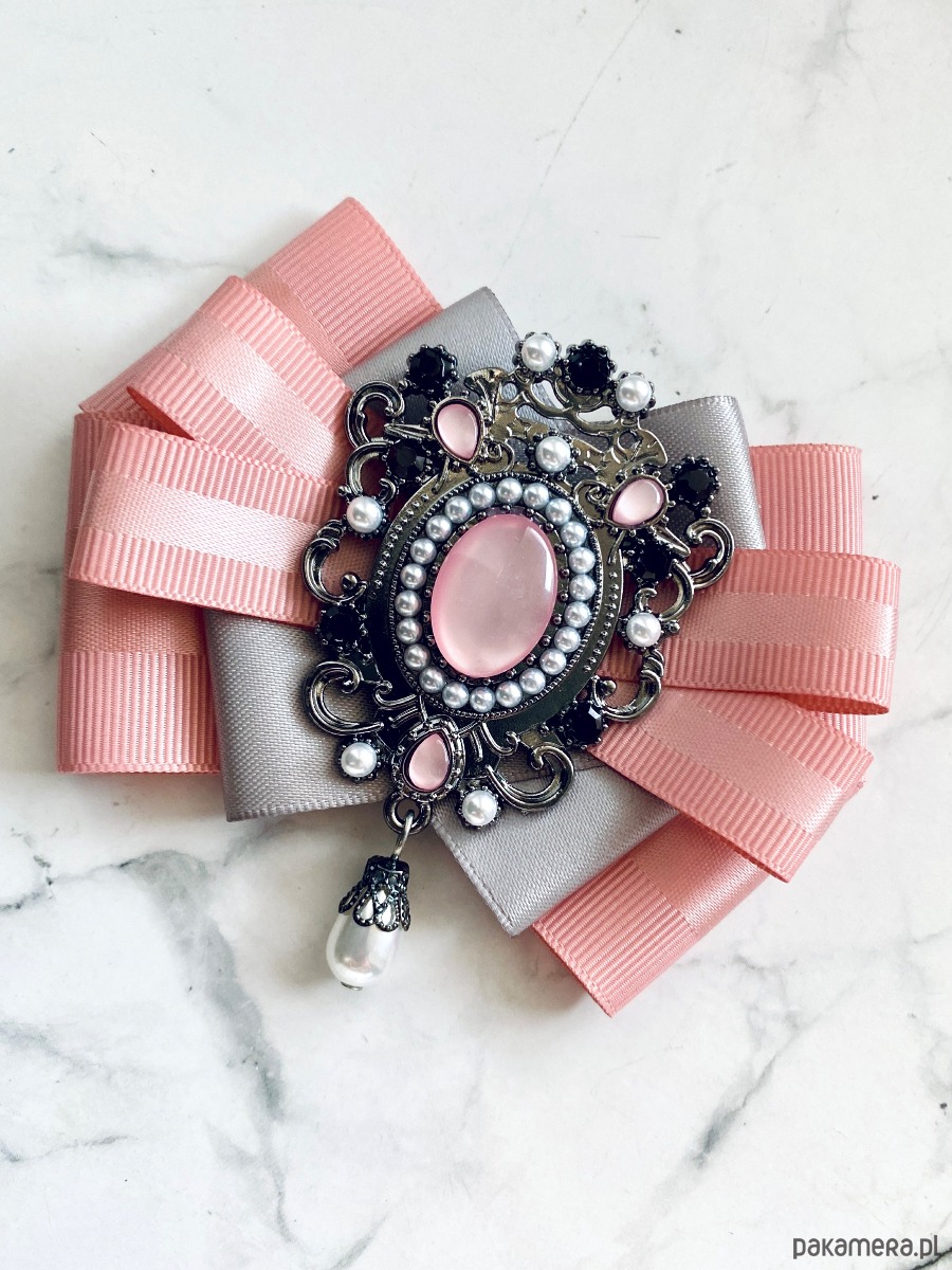 Broszka wykonana z wysokiej jakości taśm i dodatków.
