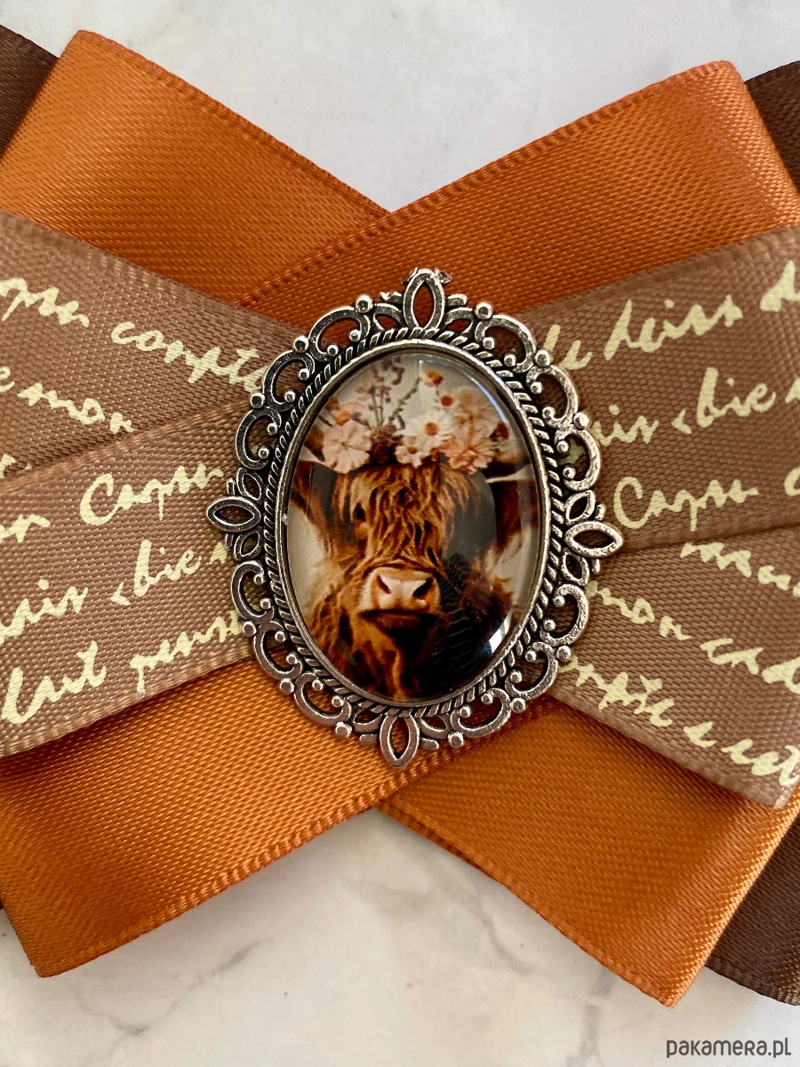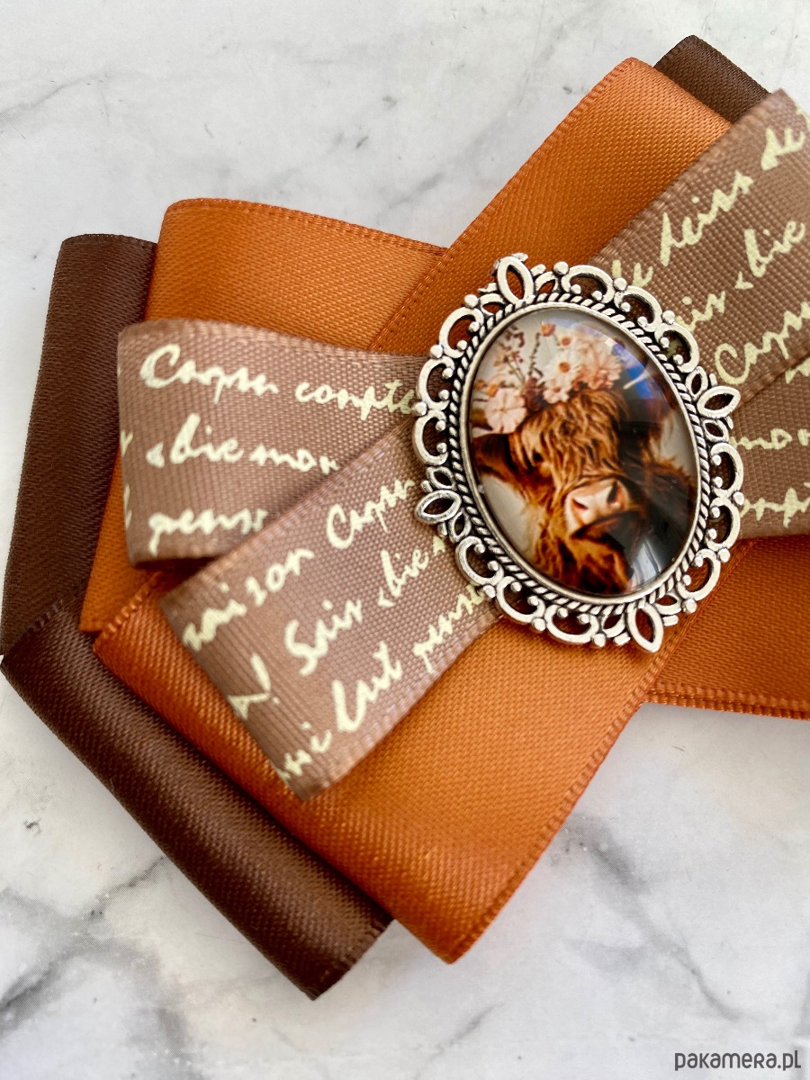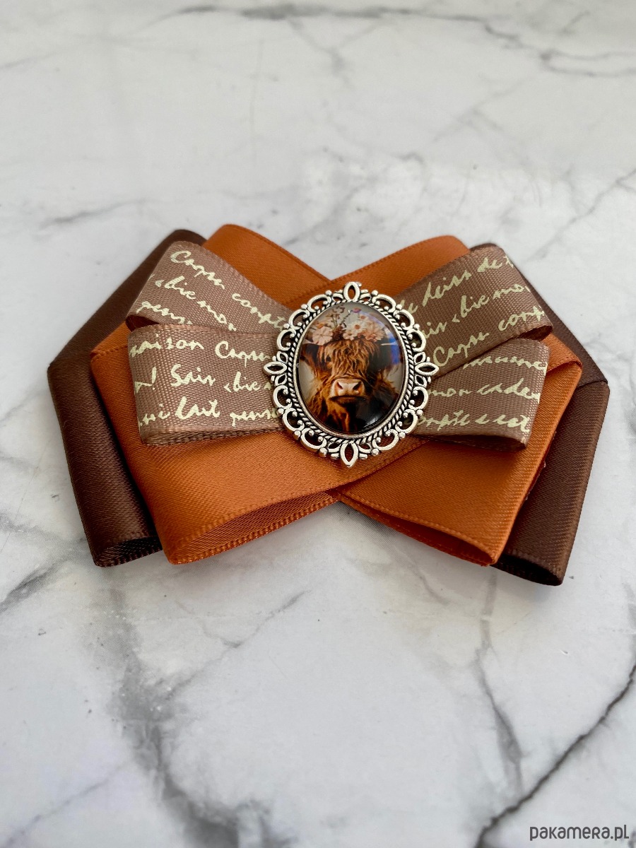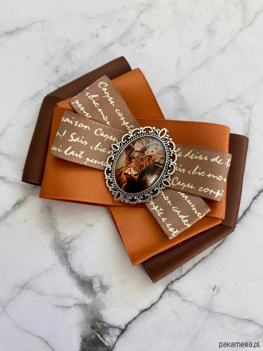 Broszka wykonana z wysokiej jakości taśm i dodatków.