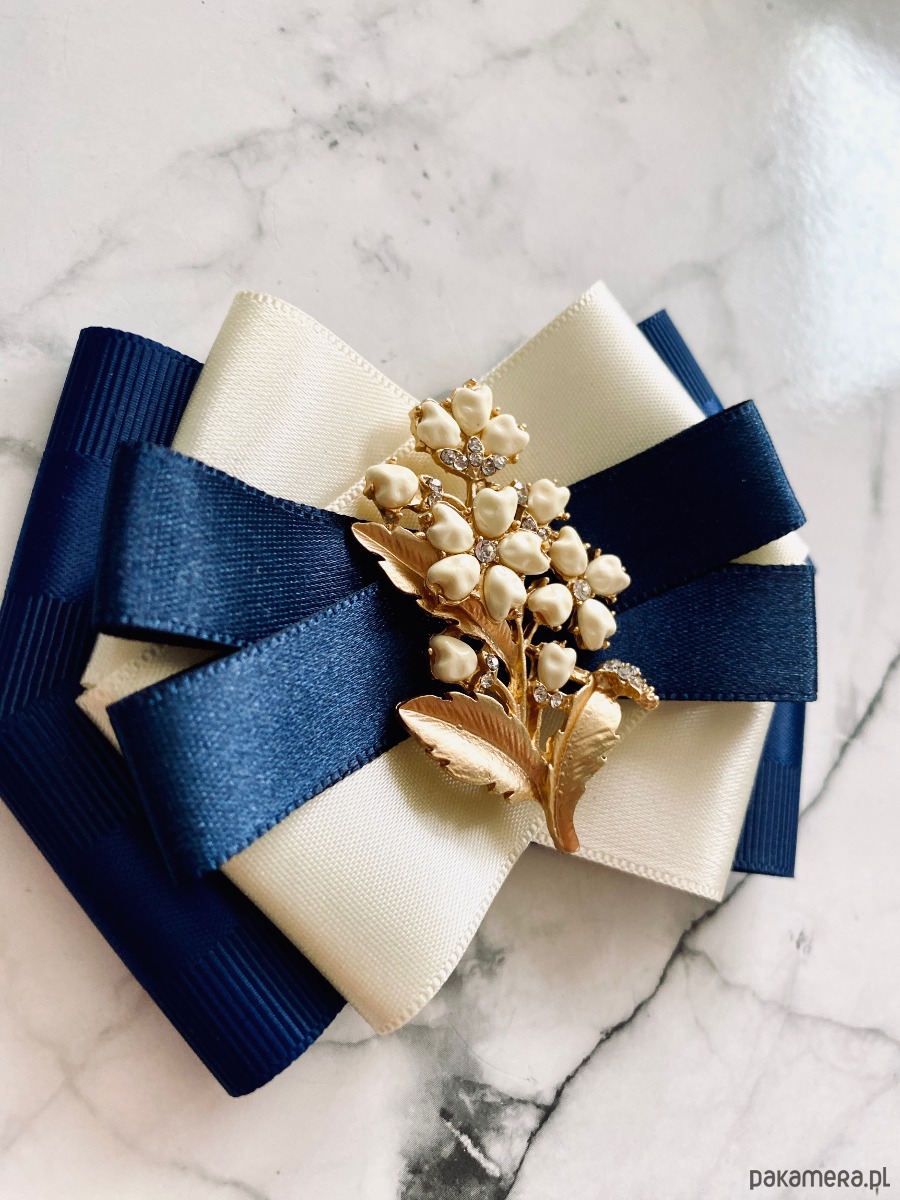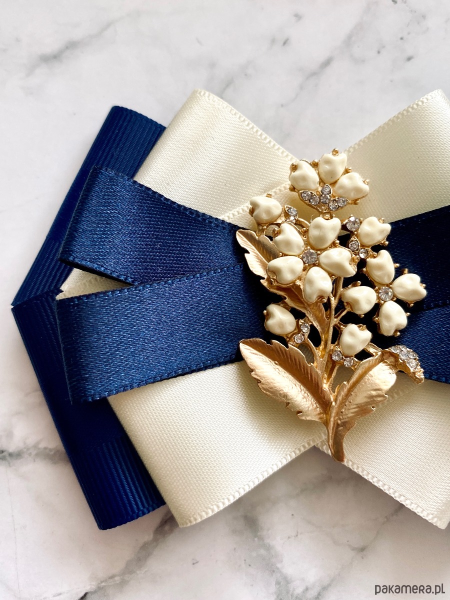 Broszka wykonana z wysokiej jakości taśm i dodatków.