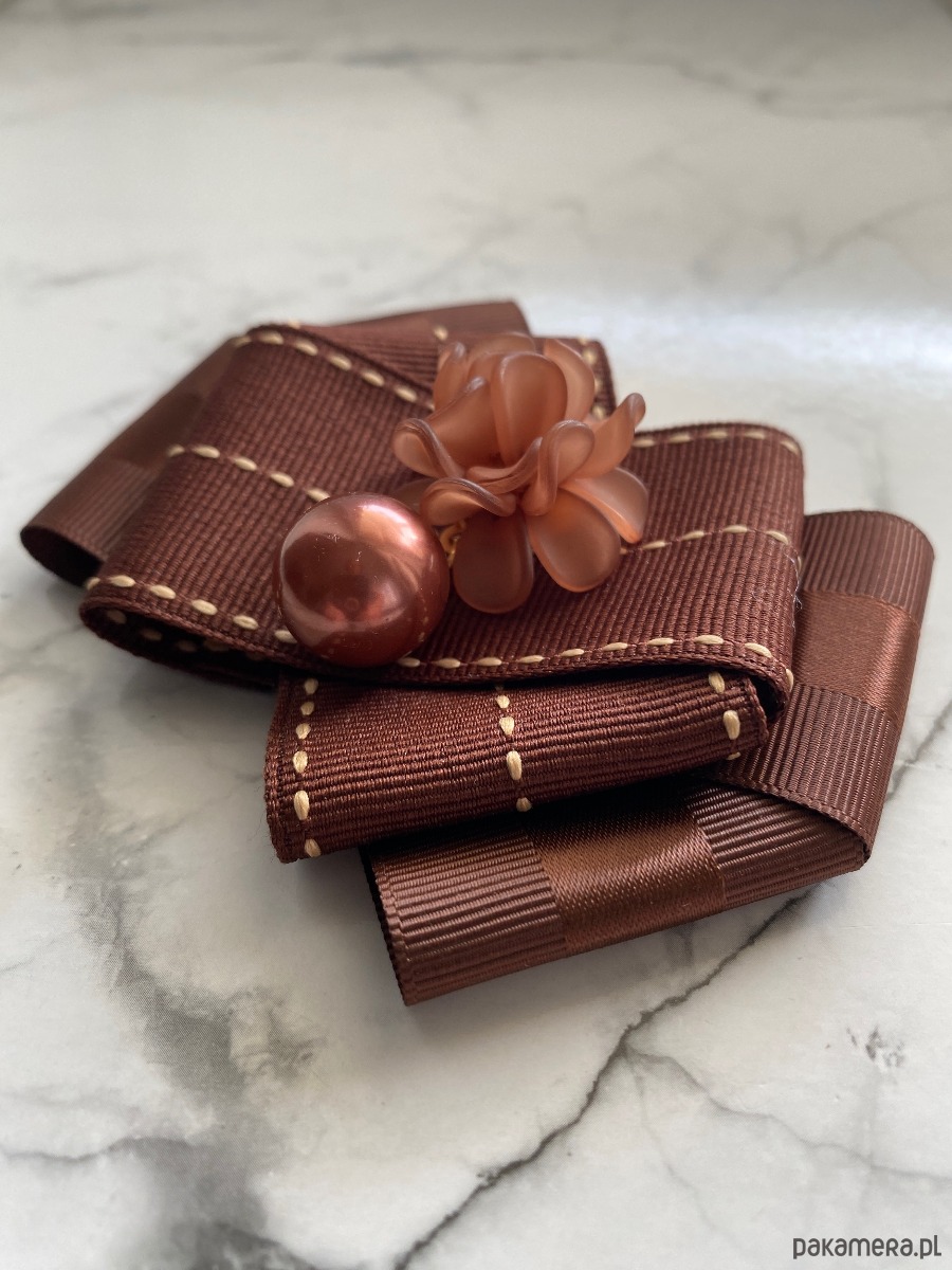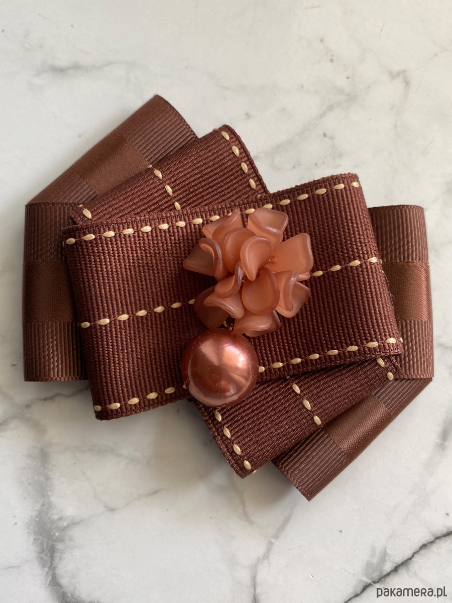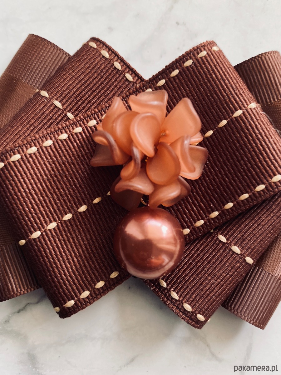 Piękna dekoracyjna ozdoba na środku, kwiaty 3d wykonane z masy a do tego perła, wszystko w cudnym brązowym kolorze.