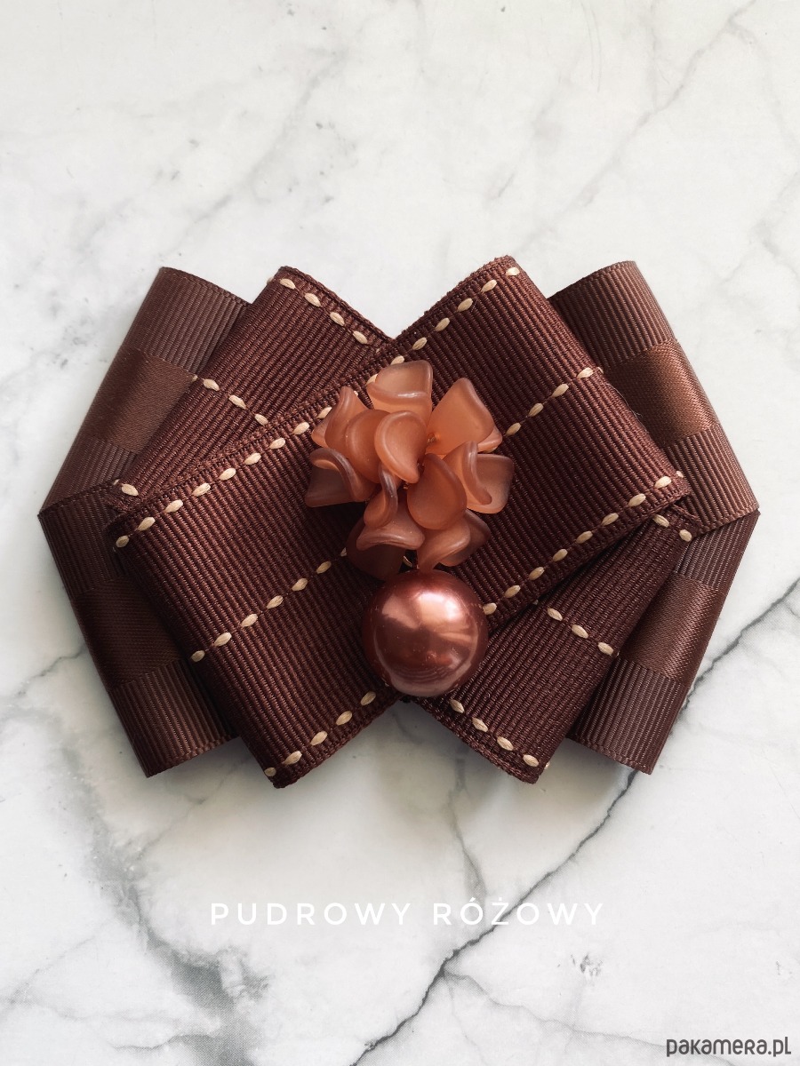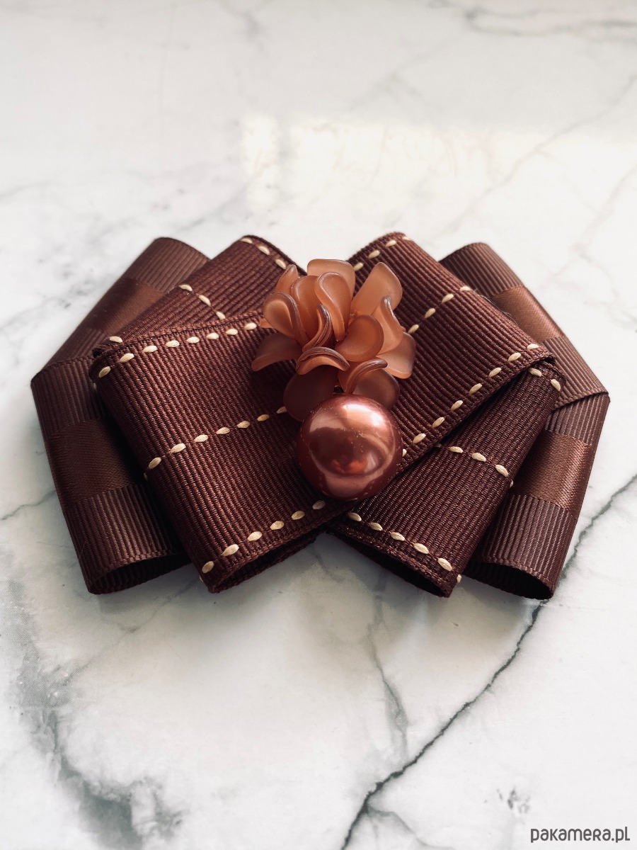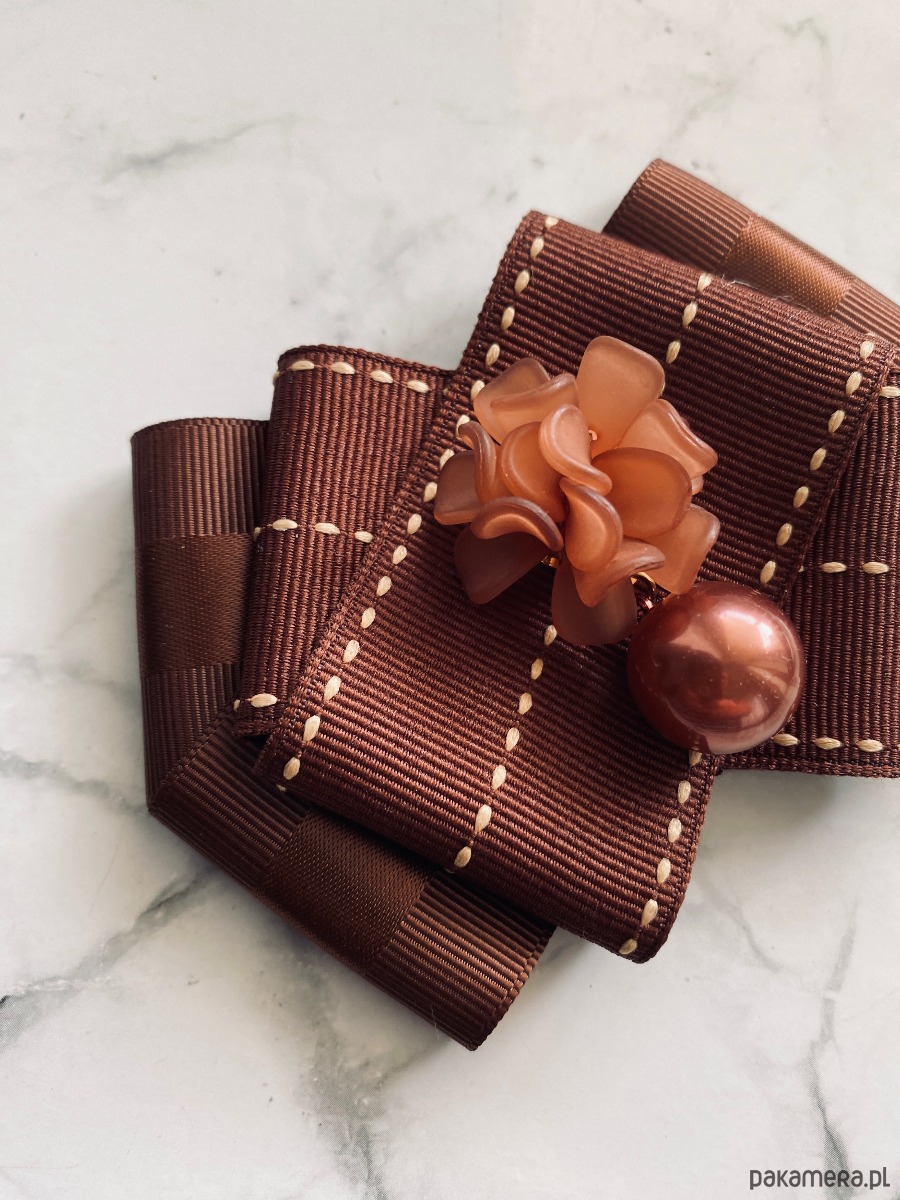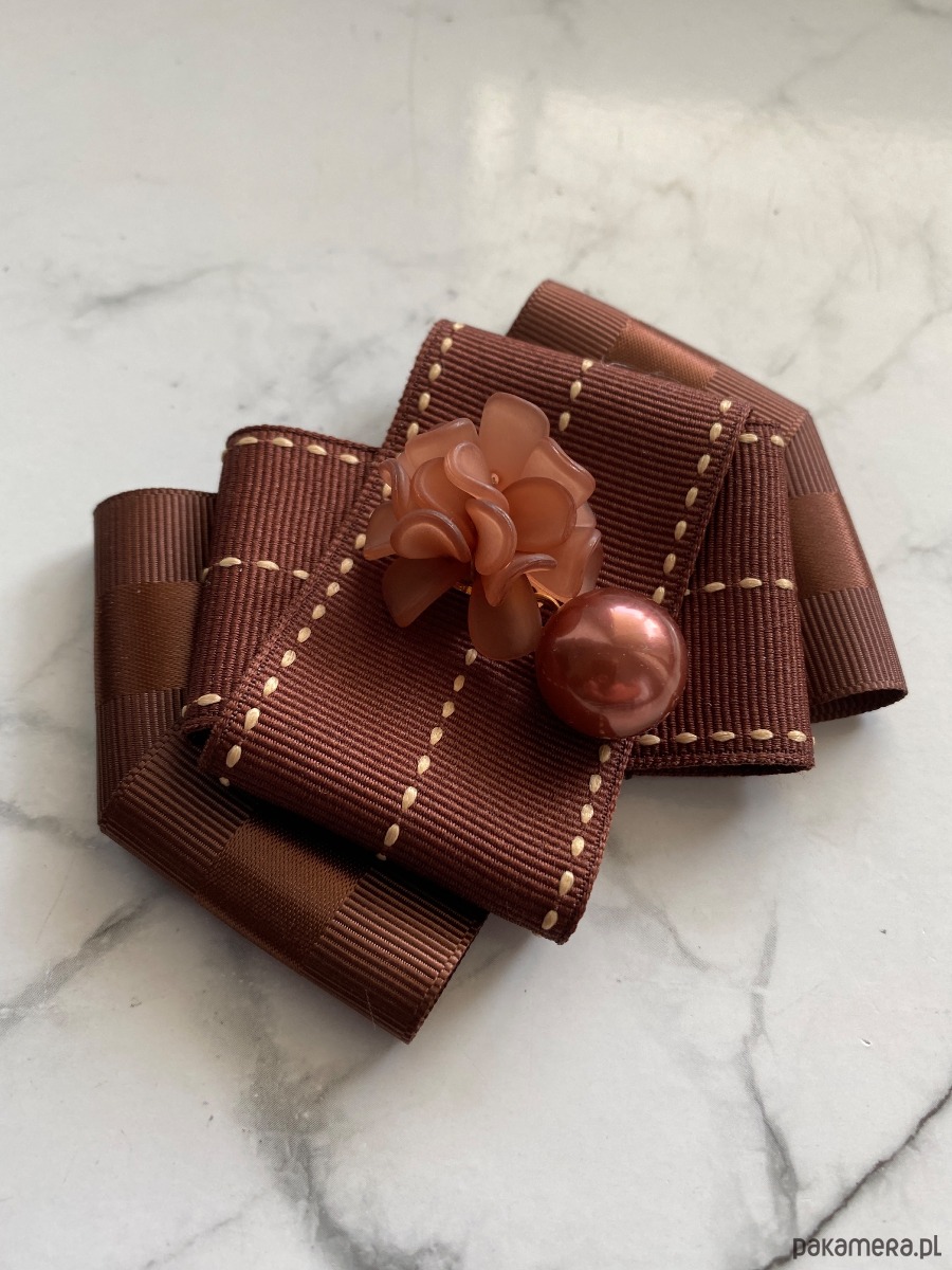 Piękna dekoracyjna ozdoba na środku, kwiaty 3d wykonane z masy a do tego perła, wszystko w cudnym brązowym kolorze.