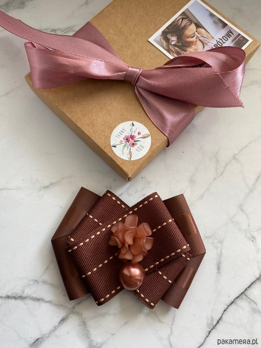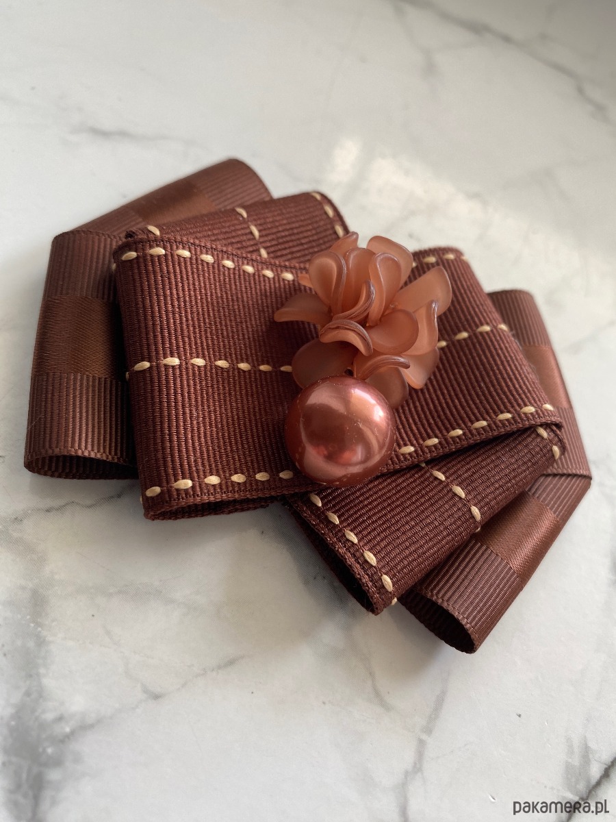 Broszka wykonana z wysokiej jakości taśm i dodatków.