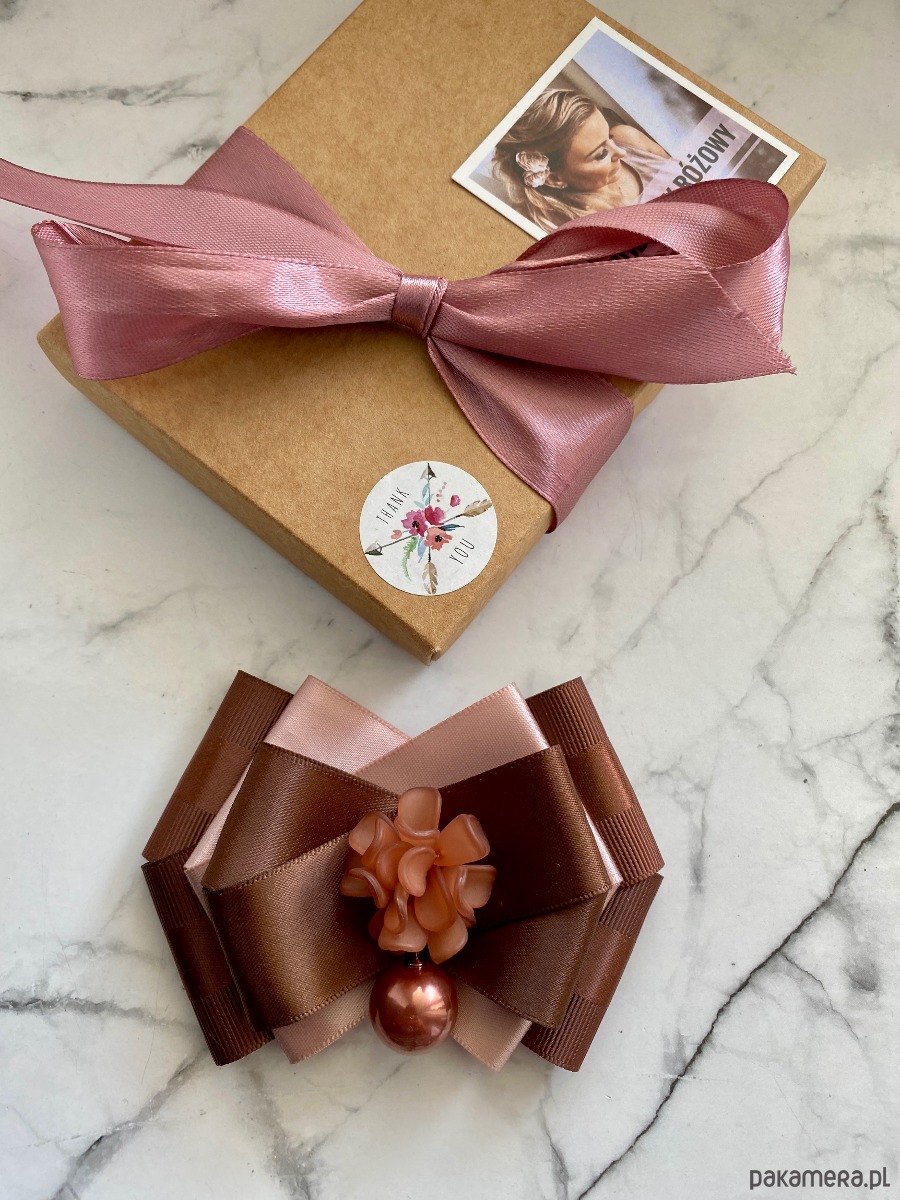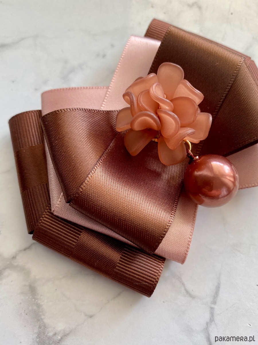 Broszka wykonana z wysokiej jakości taśm i dodatków.