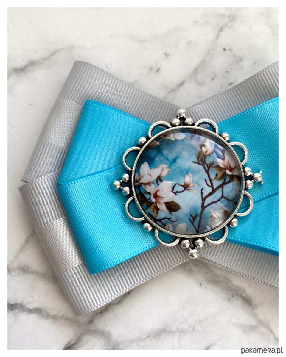 Broszka wykonana z wysokiej jakości taśm i dodatków.