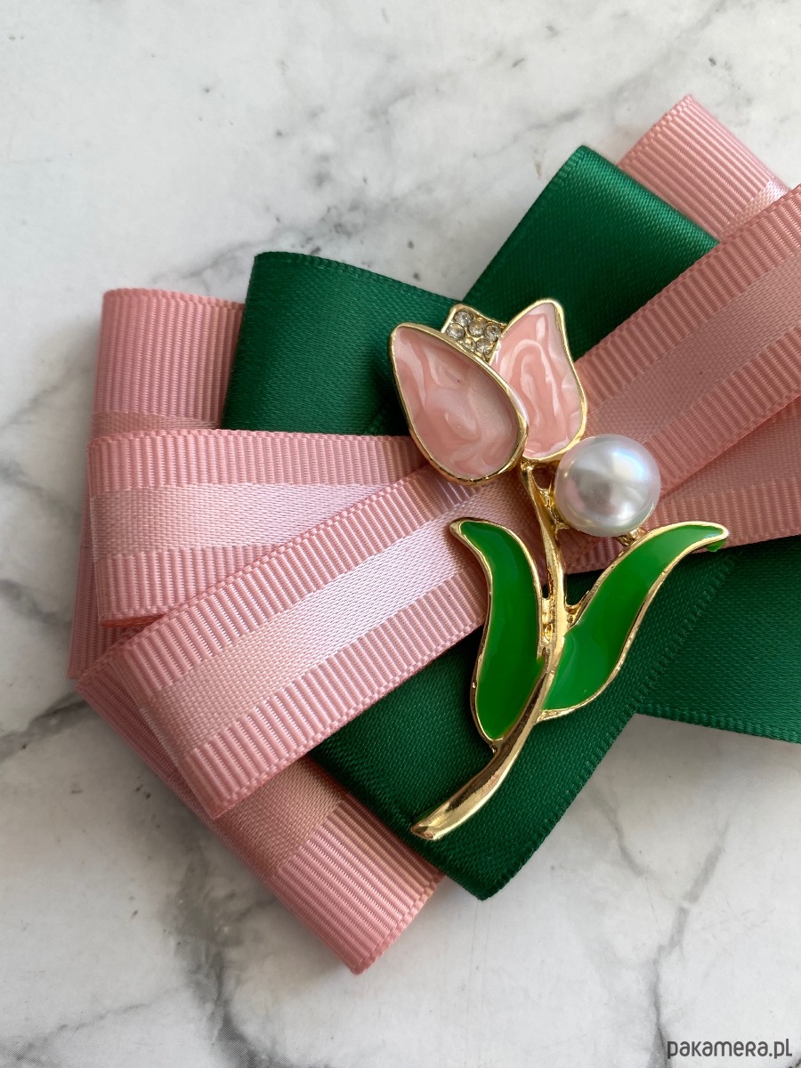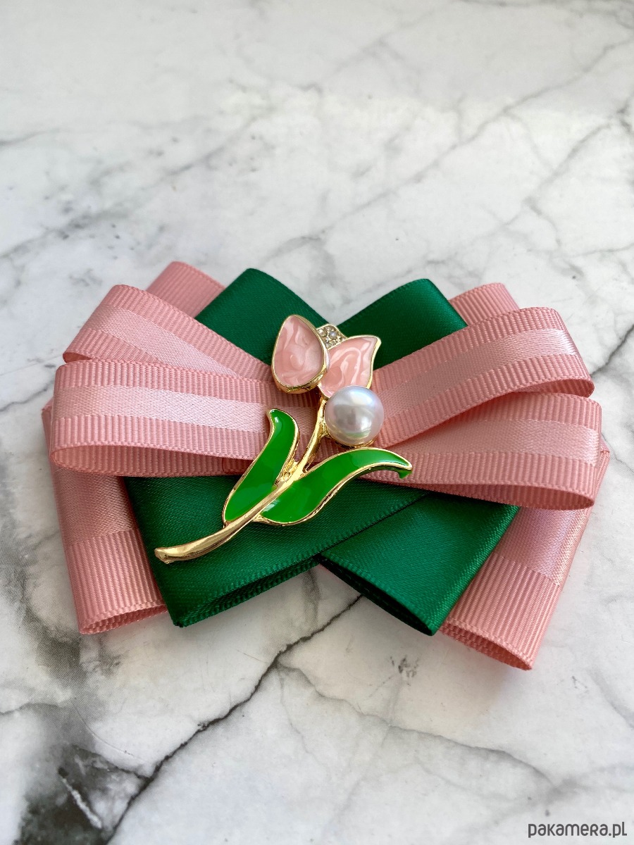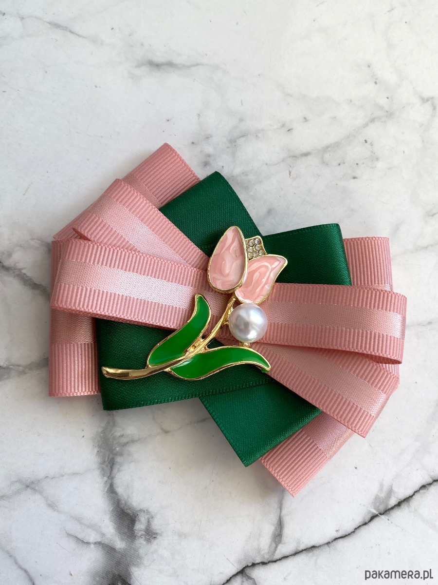 Broszka wykonana z wysokiej jakości taśm i dodatków.