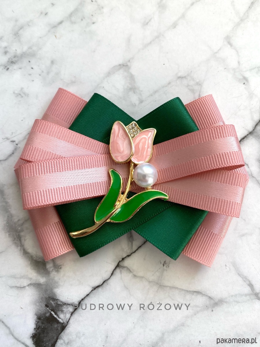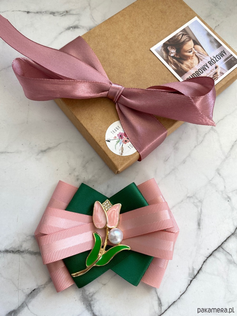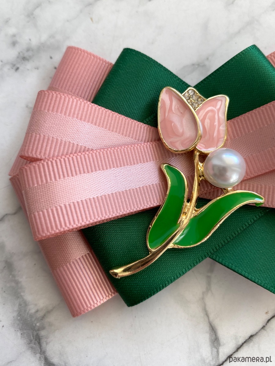 Broszka wykonana z wysokiej jakości taśm i dodatków.