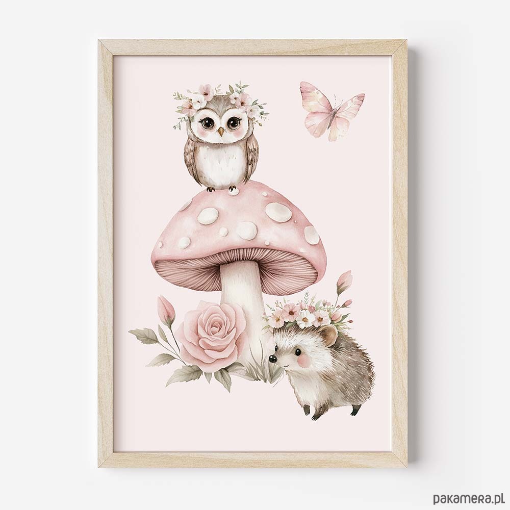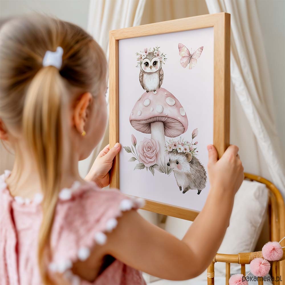 Delikatna, ciepła i pełna uroku kolekcja plakatów w odcieniach pudrowego różu, stworzona z myślą o przytulnych pokojach najmłodszych. Subtelna kolorystyka w połączeniu z uroczymi leśnymi zwierzątkami tworzy harmonijną dekorację, która wprowadza do wnętrza spokój, miękkość i bajkowy klimat.